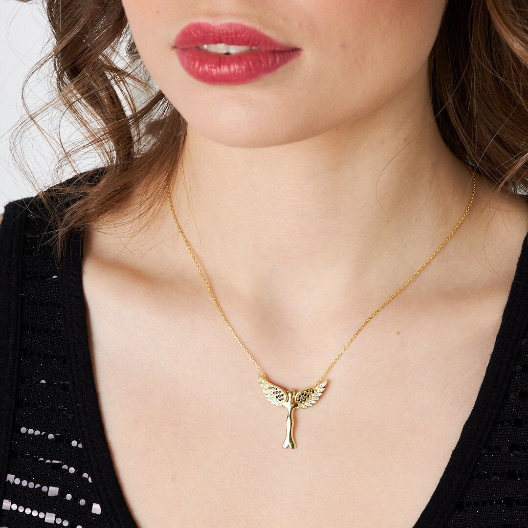 açılış kanatlı melek kolyesi