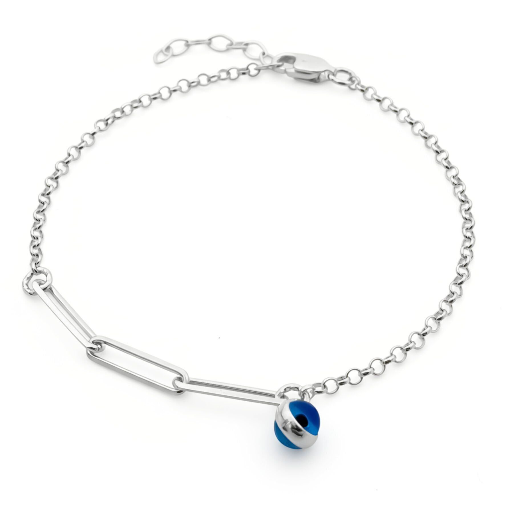 Ataç Zincir Detaylı Nazar Boncuklu Bileklik - 925 GÜMÜŞ