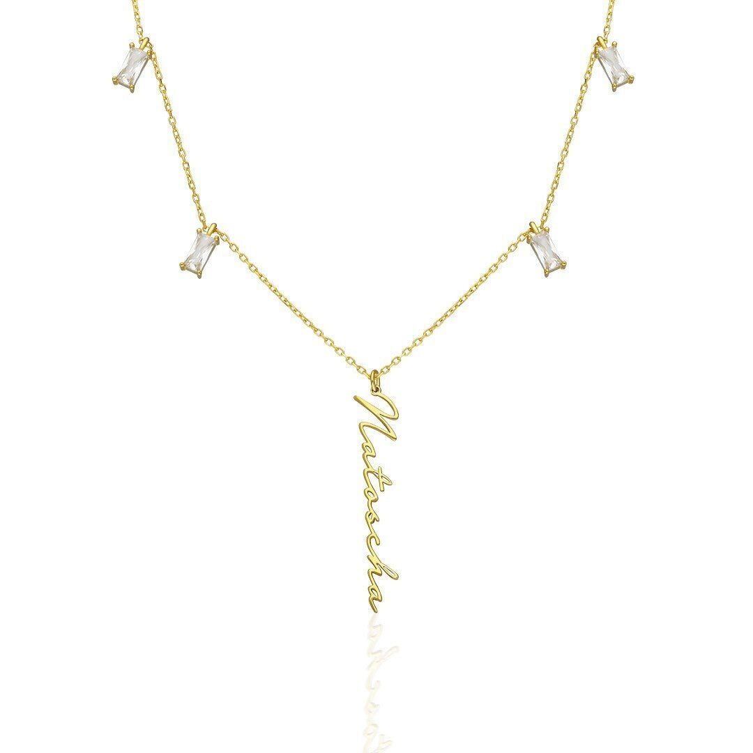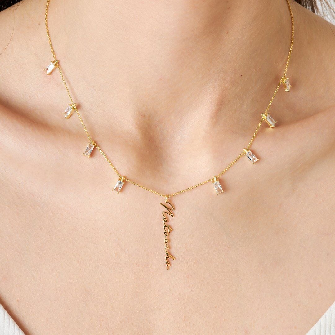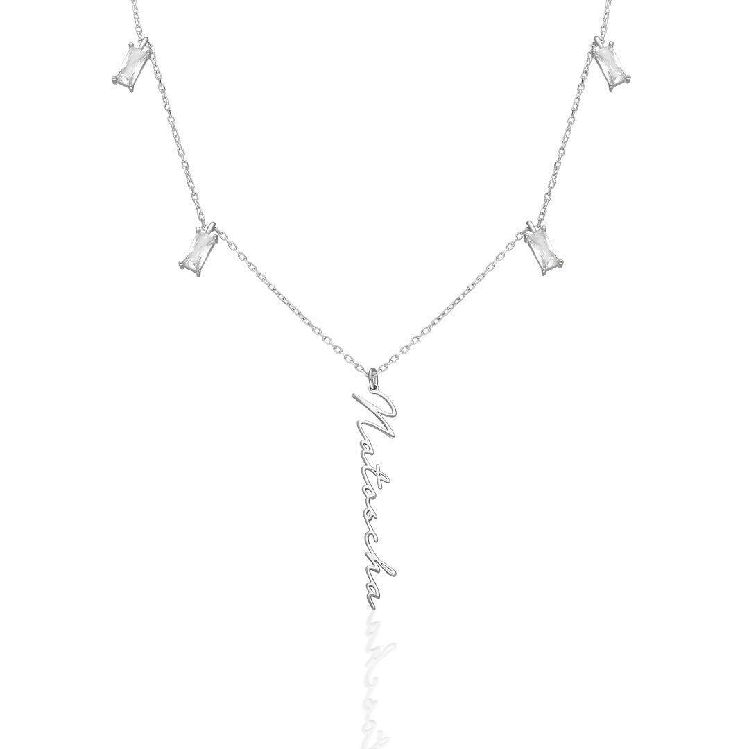 Baget Taşlı İsim Kolyesi - 925 Ayar Gümüş, 925 ayar gümüşün zarifliğini modern tasarımla buluşturuyor. El işçiliğiyle üretilen bu Baget Taşlı İsim Kolyesi, her kombine uyum sağlayan şık bir aksesuardır.