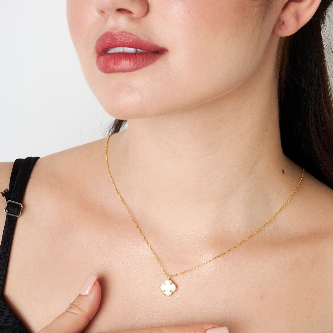 beyaz taşlı yonca kolye
