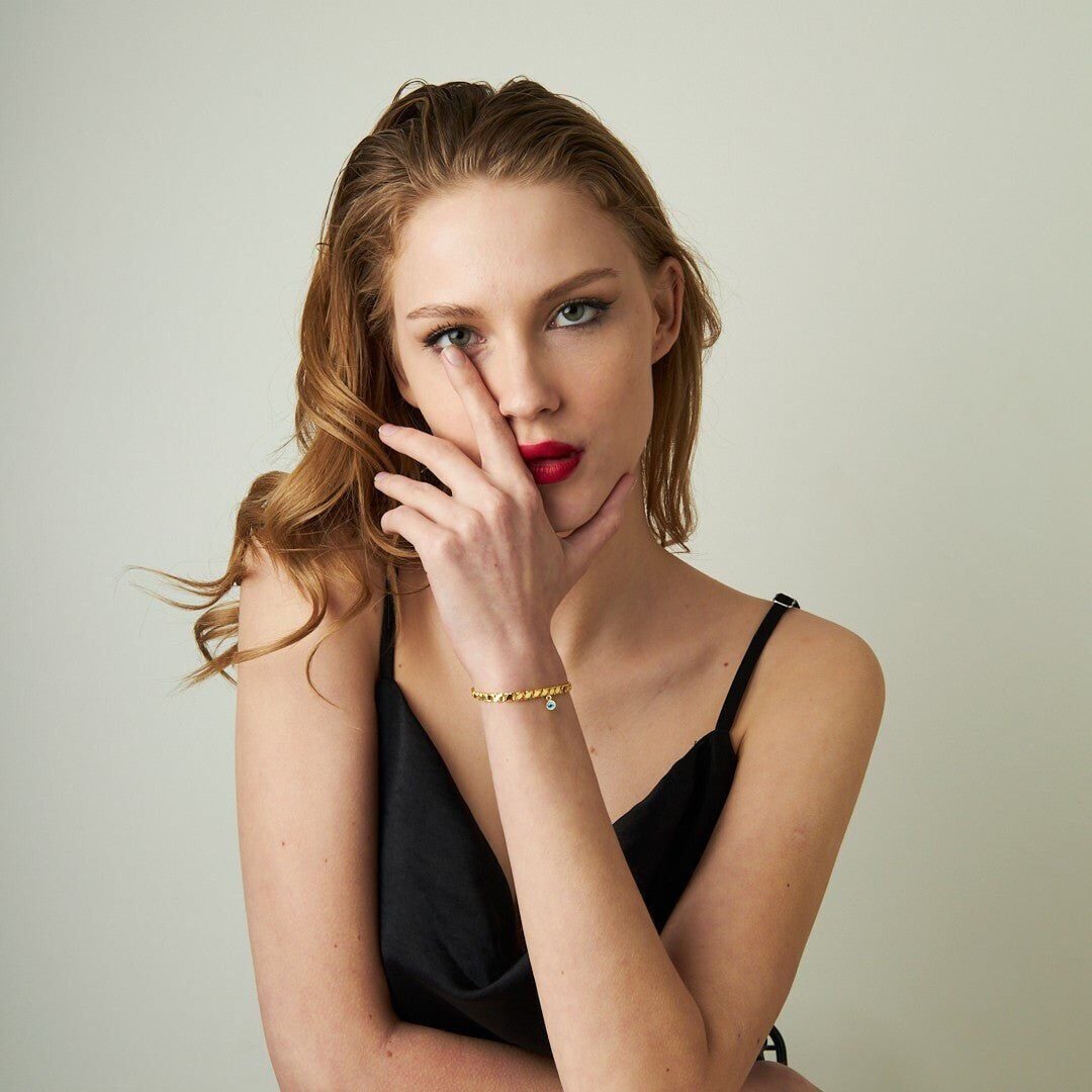 925 ayar gümüşten üretilen Nazar Boncuklu Arpa Pullu Bileklik, hassas işçiliği ve uzun ömürlü yapısıyla öne çıkar. Yüzeyi özel parlatma işlemiyle işlenmiş olup ışığı mükemmel biçimde yansıtır.