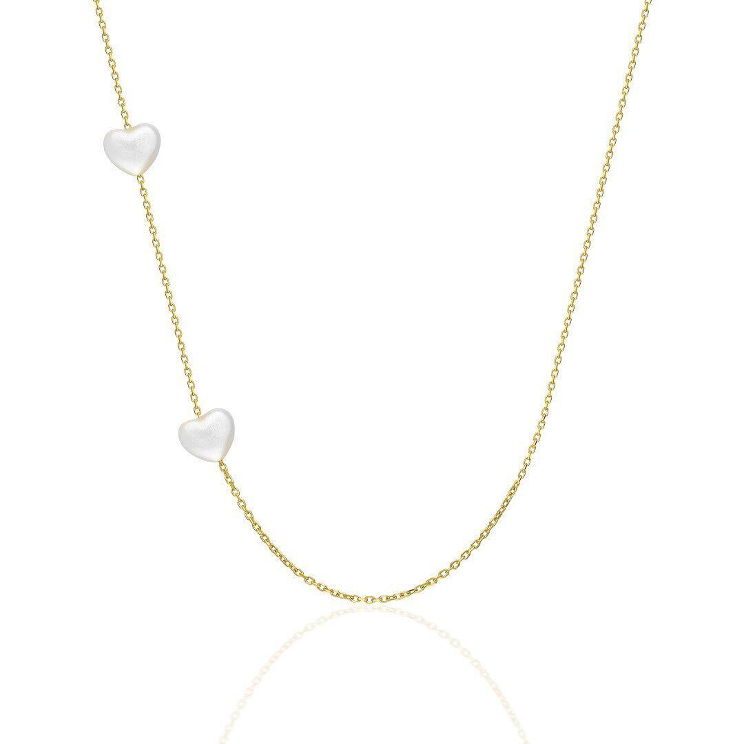 Çift İnci Zincirli Kalp Kolye - 925 Ayar Gümüş