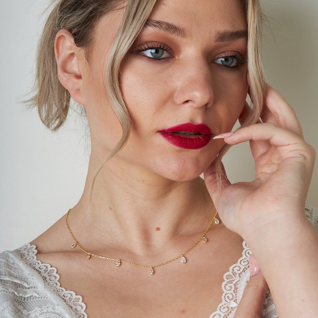 damla ve taşlı kolye