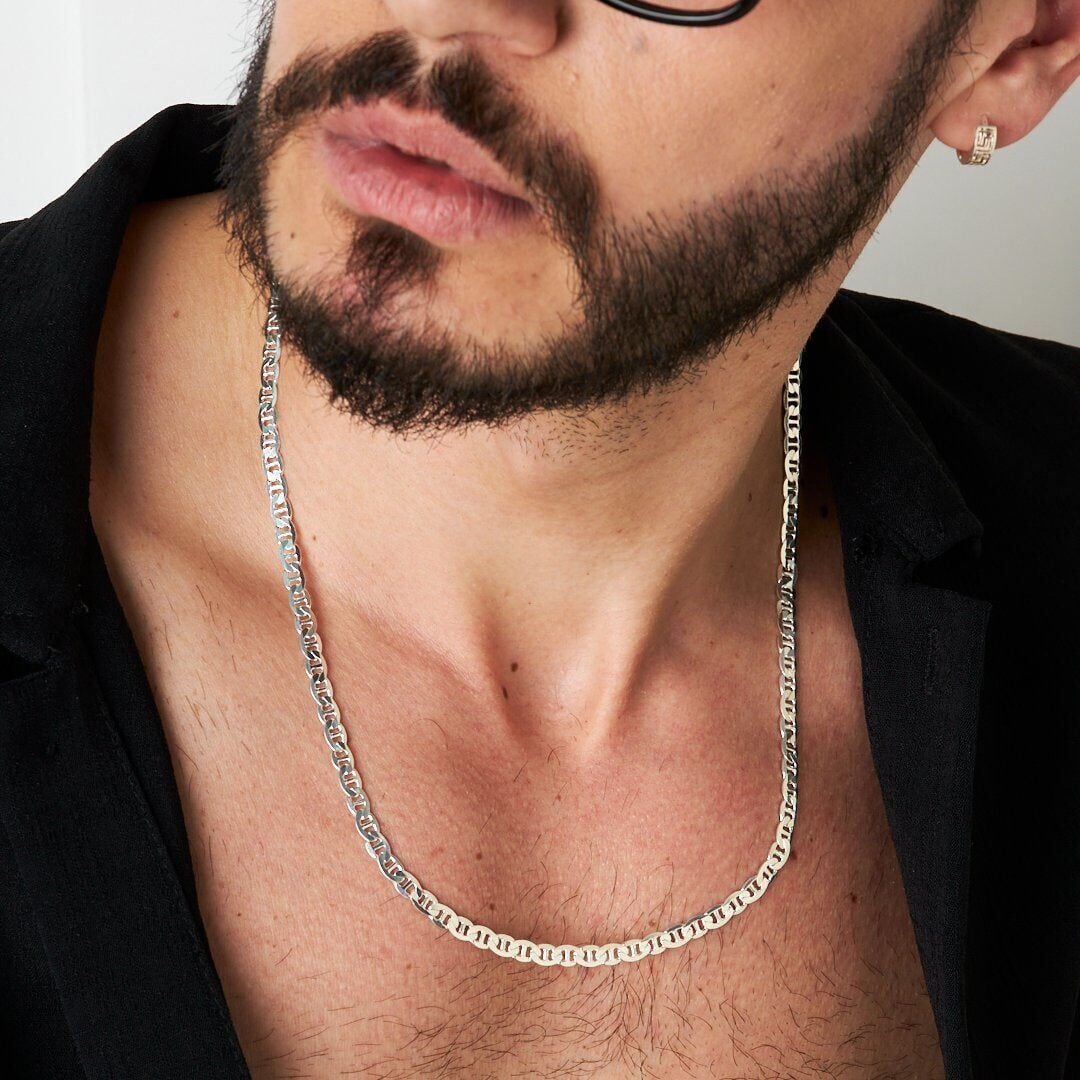 Denizci Zincir Kolye - 925 Ayar Gümüş, 925 ayar gümüşün zarifliğini modern tasarımla buluşturuyor. El işçiliğiyle üretilen bu Denizci Zincir Kolye, her kombine uyum sağlayan şık bir aksesuardır.