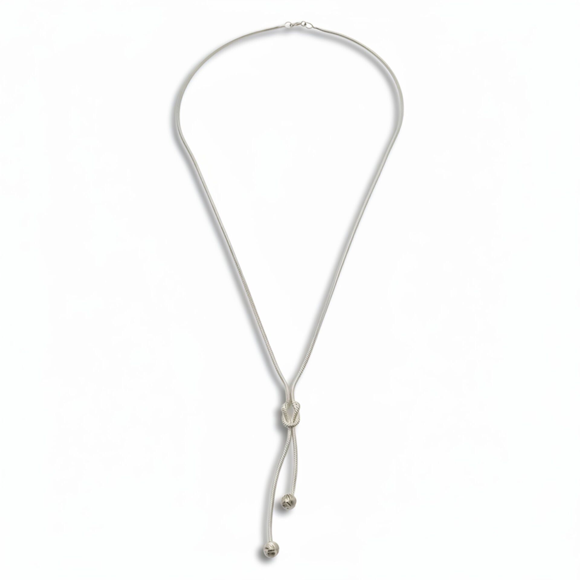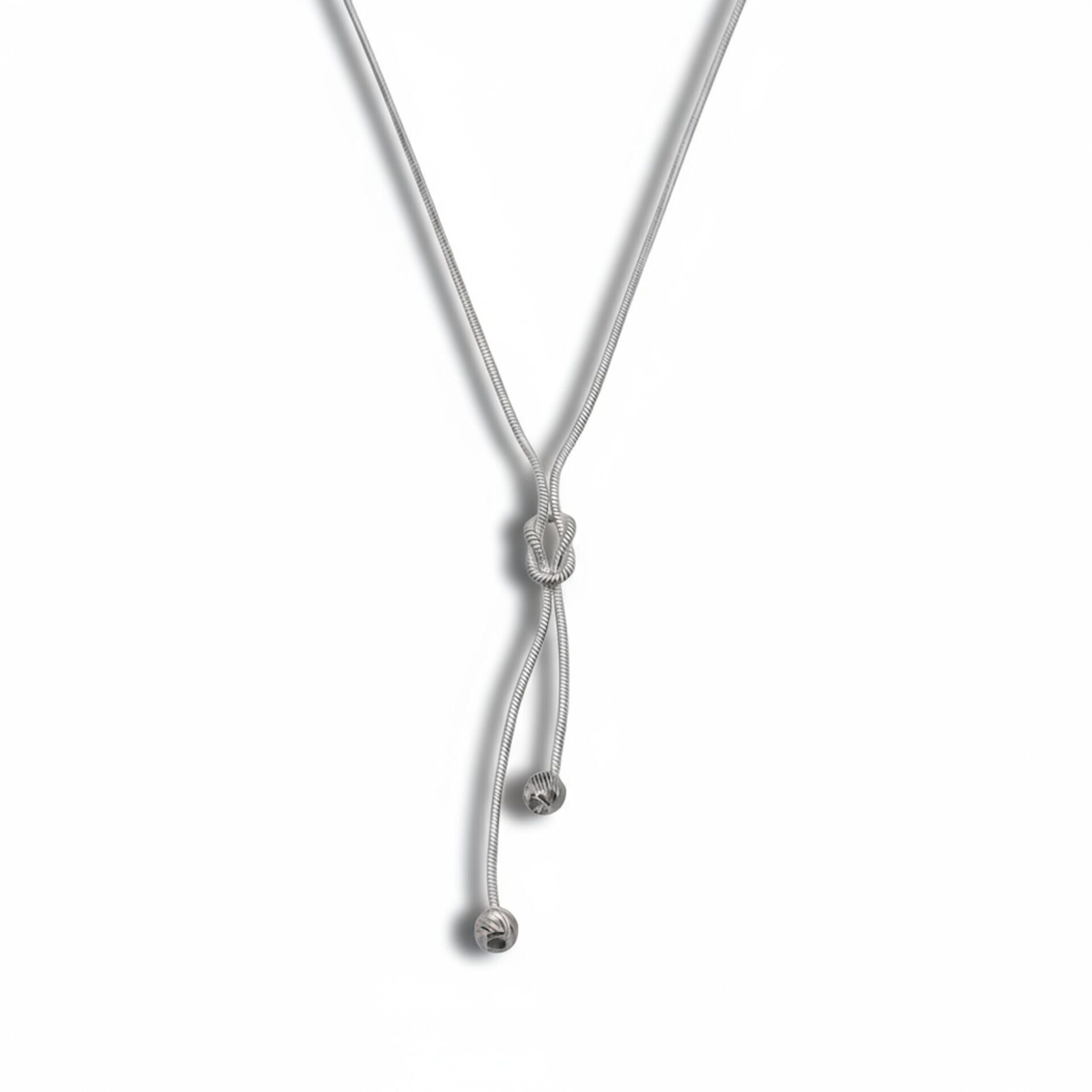 Zarif düğüm detaylı zincir tasarımıyla öne çıkan bu kolye, 925 ayar gümüşten üretilmiştir. Minimal ve modern tasarımı, hem günlük kullanımda hem de özel günlerde şıklığınızı tamamlar. Parlak ve dayanıklı yapısıyla uzun ömürlü bir aksesuardır.