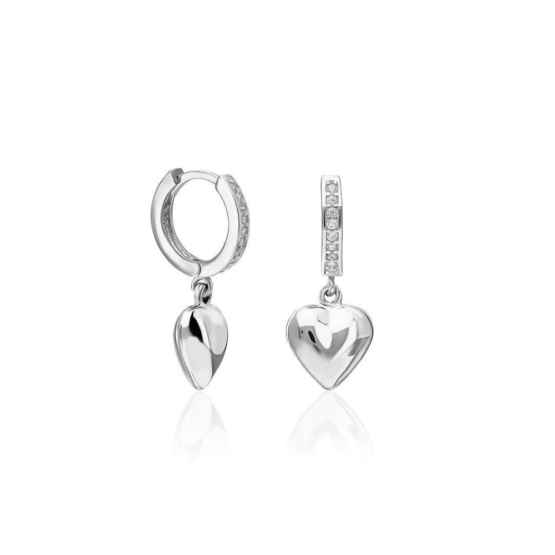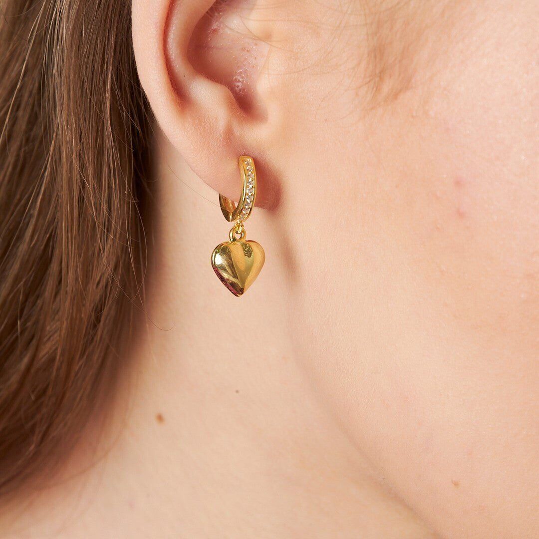 düz kalp taşlı halka küpeler