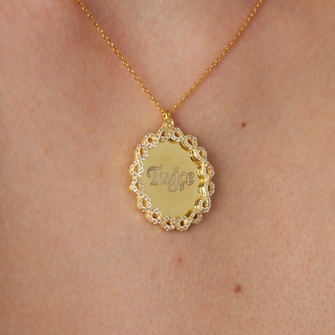 Ebedi plakalı harfli isim kolyesi