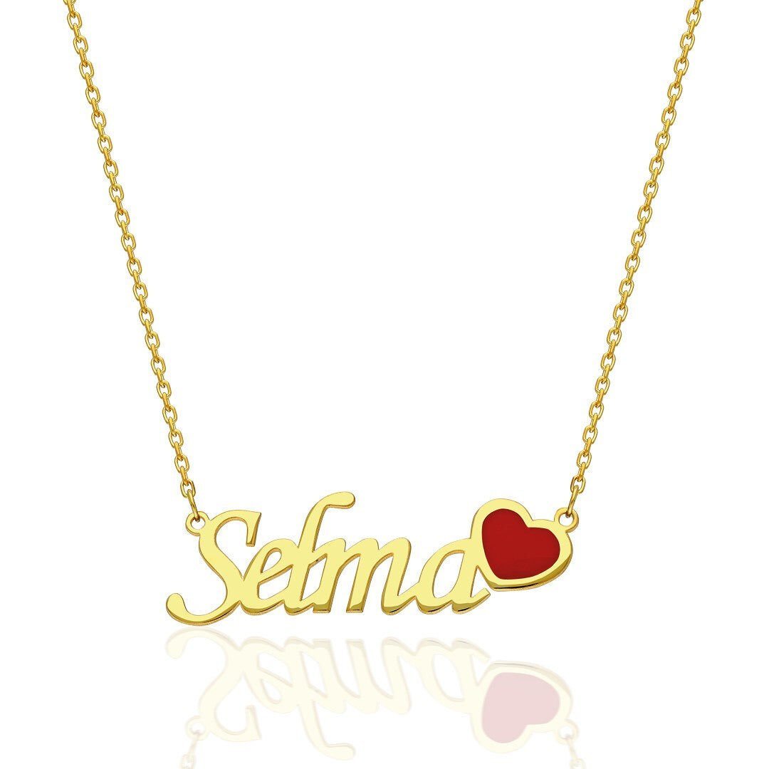 el yazısıyla isim ve kalp detayı bulunan isim kolyesi