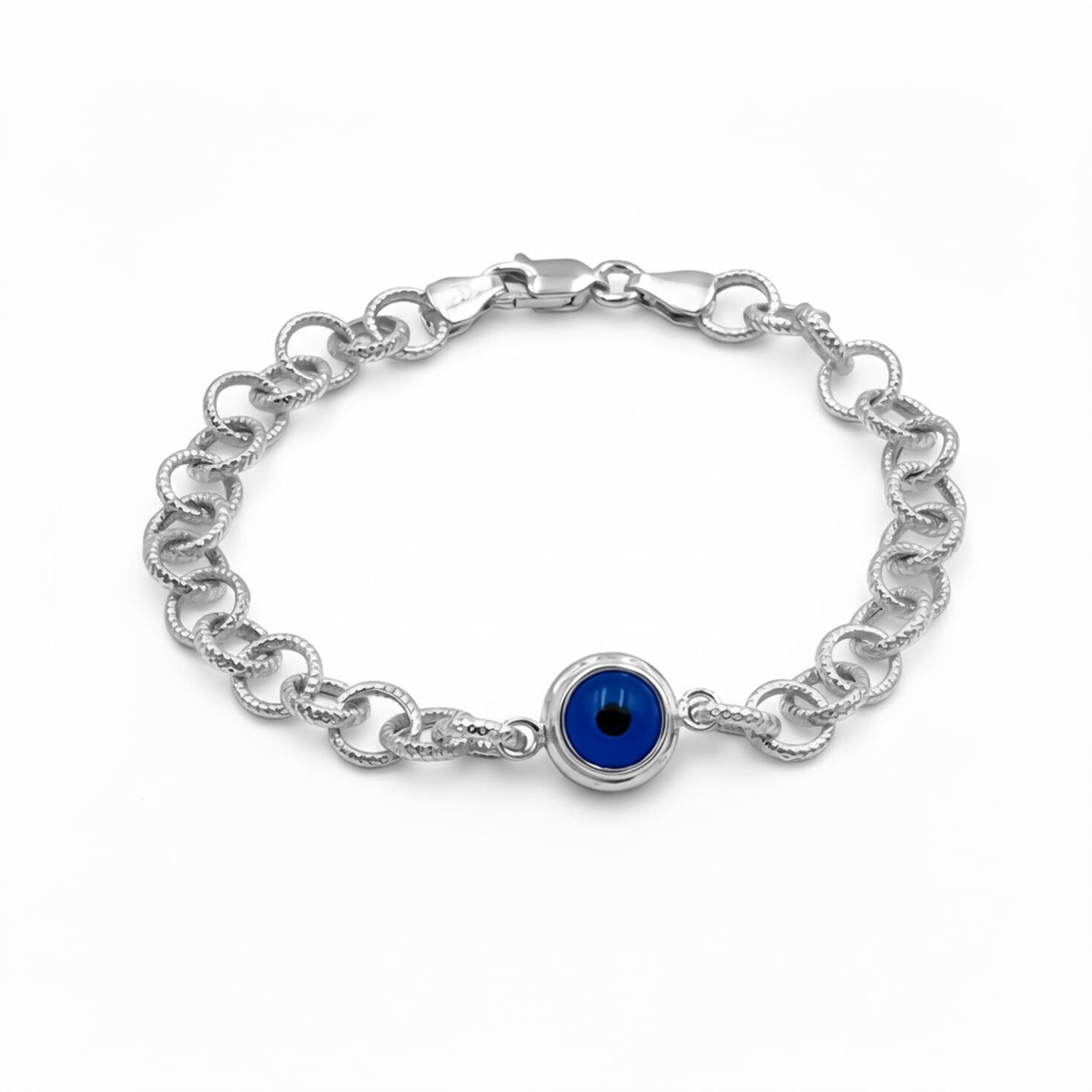 Halka Zincir Nazar Boncuklu Bileklik – 925 Ayar Gümüş