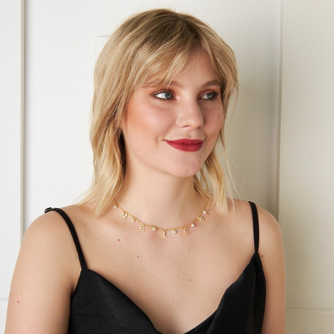 Figaro İnci Taşlı İsim Kolye - 925 GÜMÜŞ