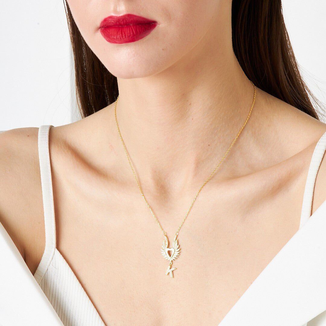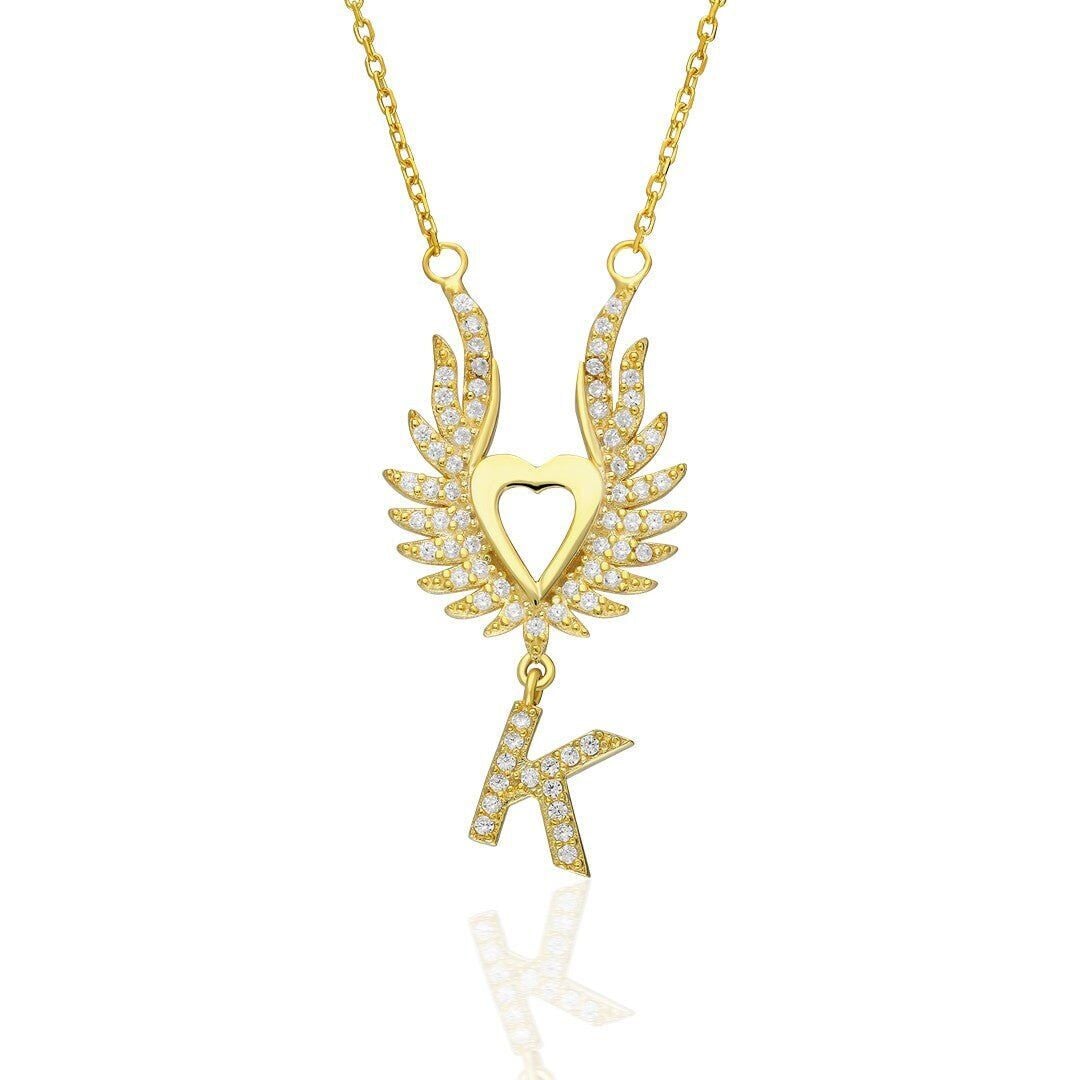 Harfli Büyük Kanatlı Kalp Kolye - 925 Ayar Gümüş