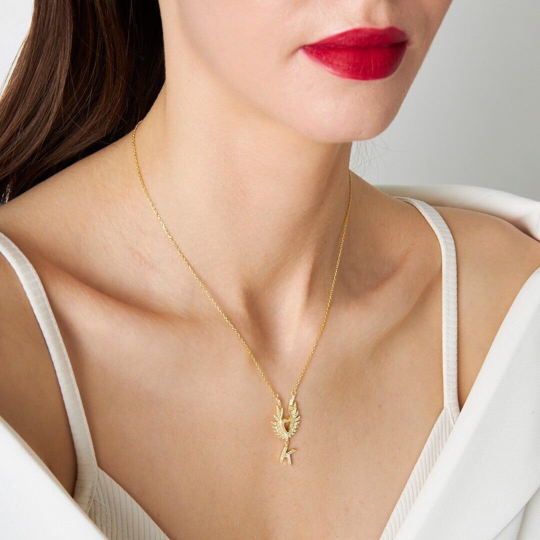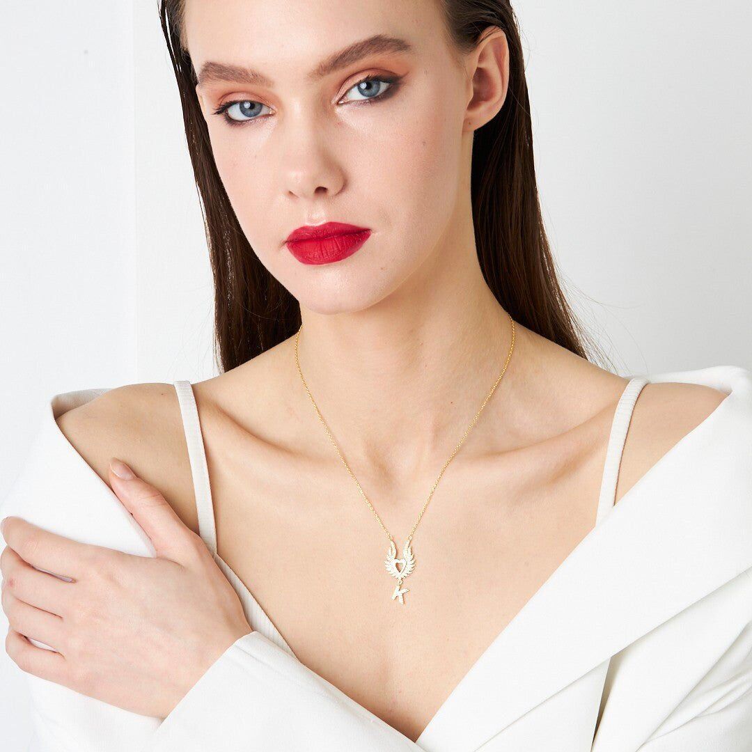 Harfli Büyük Kanatlı Kalp Kolye - 925 Ayar Gümüş, 925 ayar gümüşün zarifliğini modern tasarımla buluşturuyor. El işçiliğiyle üretilen bu Harfli Büyük Kanatlı Kalp Kolye, her kombine uyum sağlayan şık bir aksesuardır.