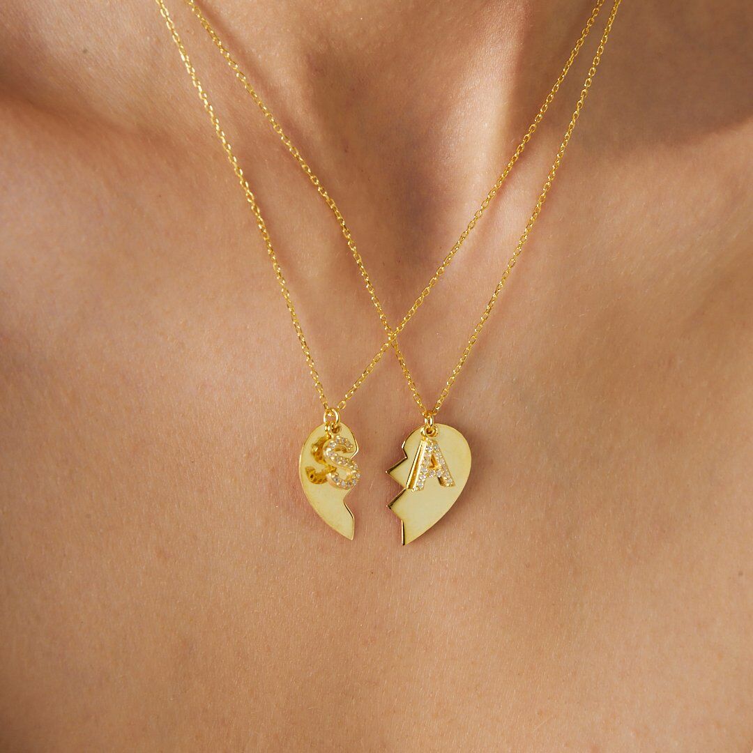 harfli iki parçalı kalp kolye