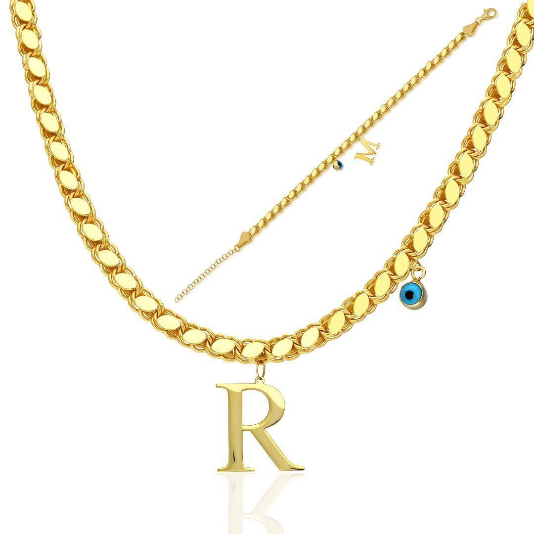 harfli pullu eşarp kolye seti