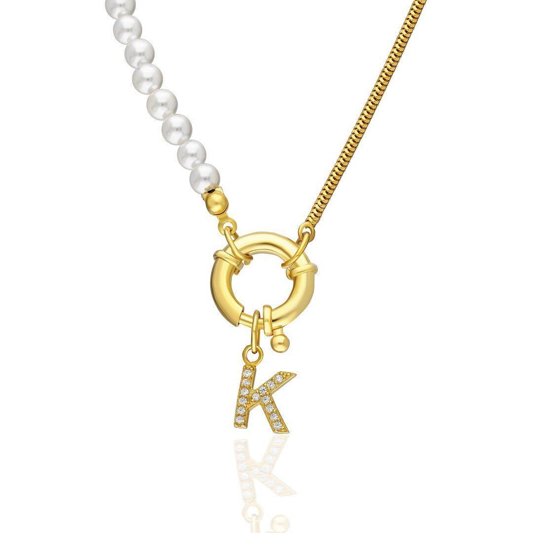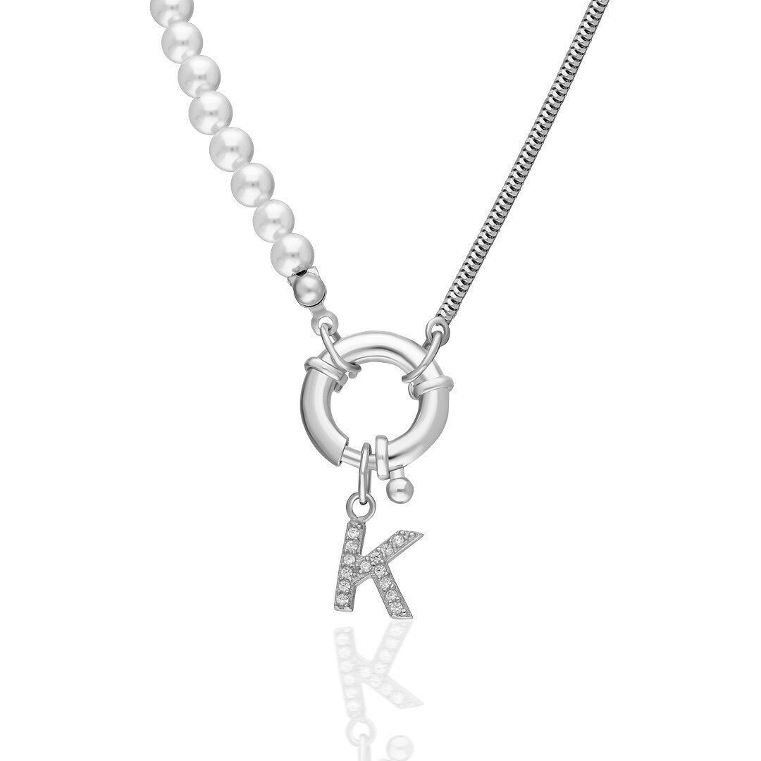 İnci Ve Zincirli Harf Kolye - 925 Ayar Gümüş