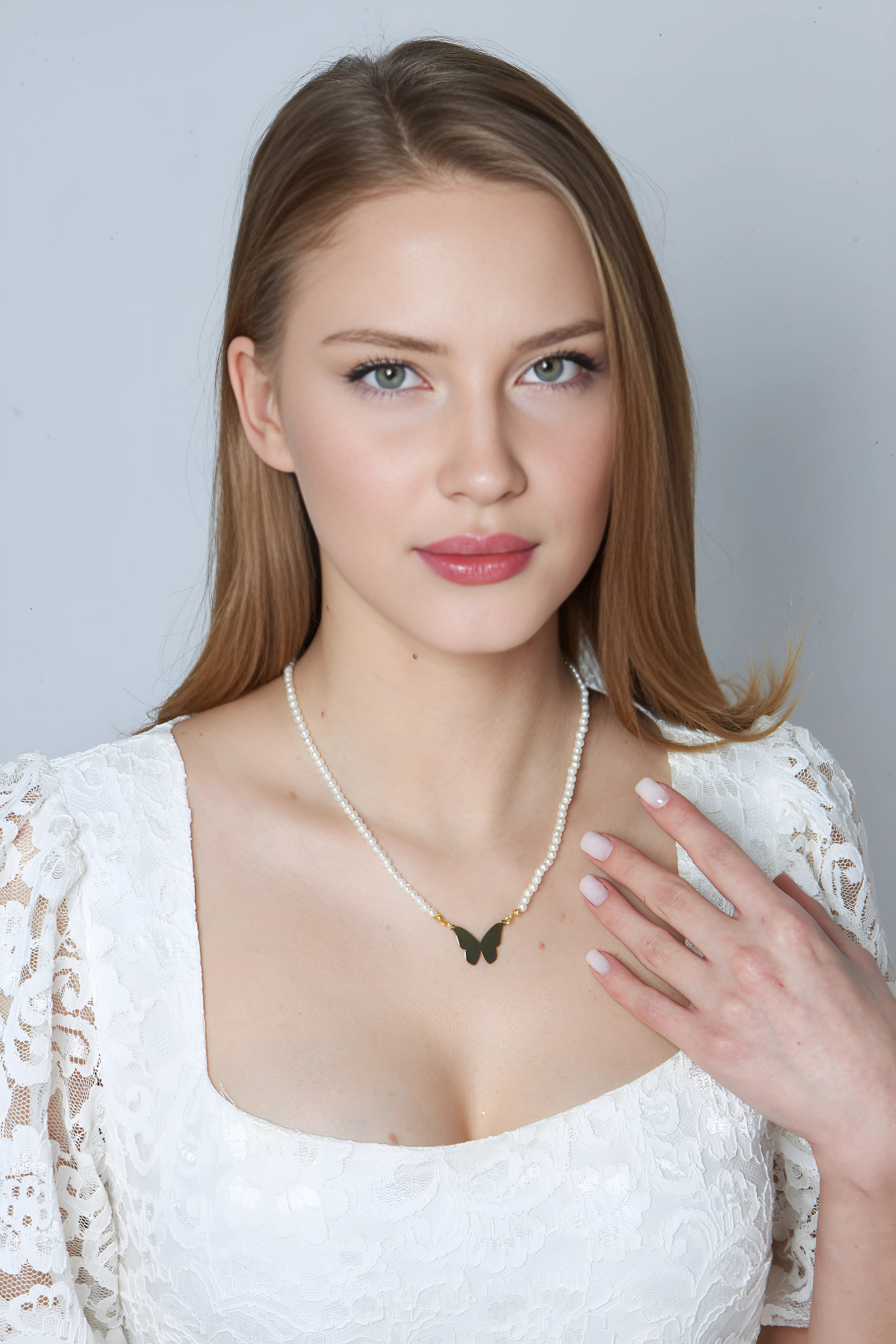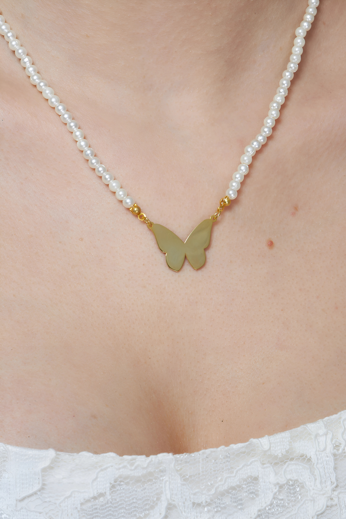 incili bahar kelebek kolyesi