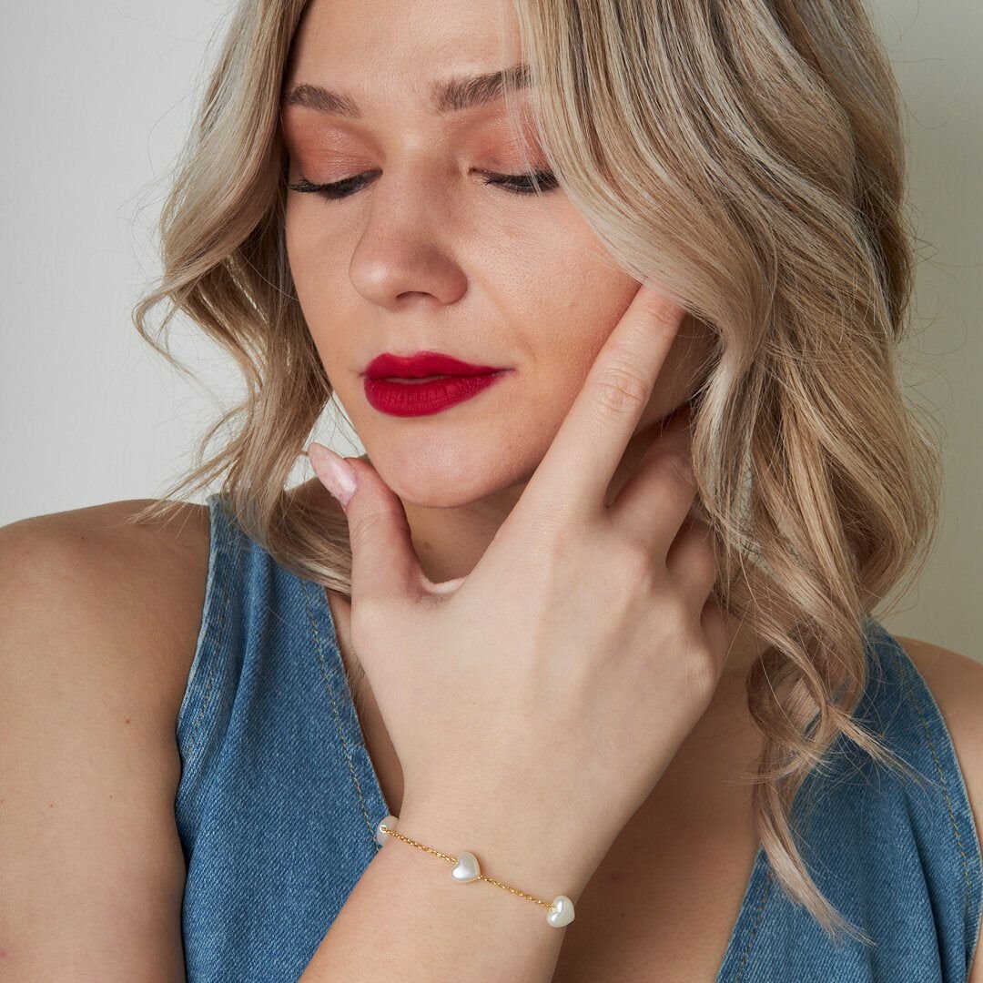 incili kalp bilezik