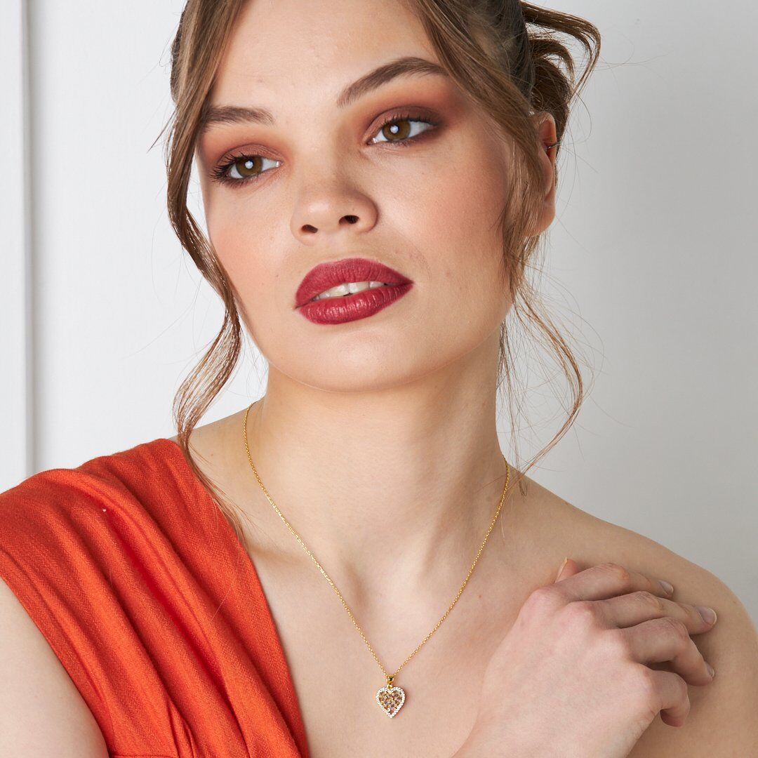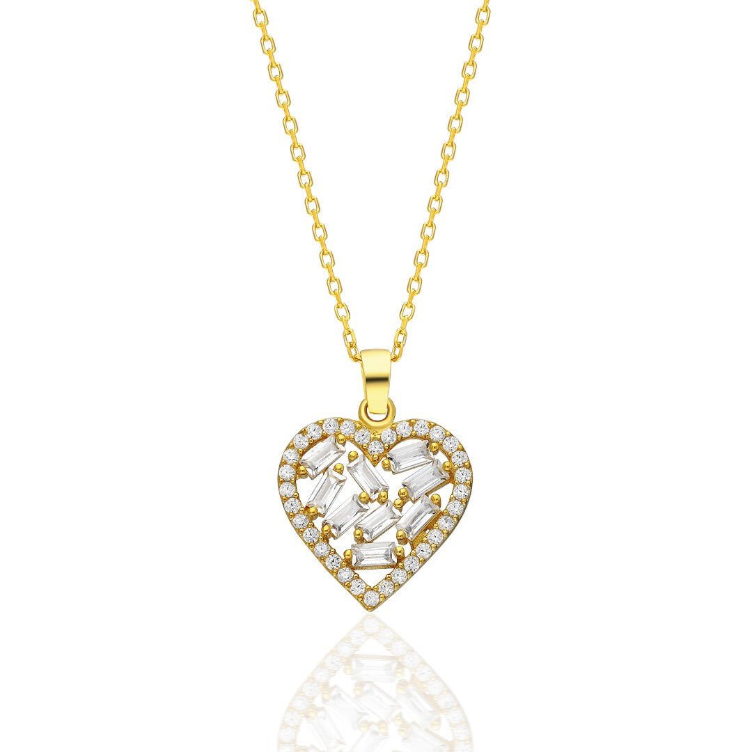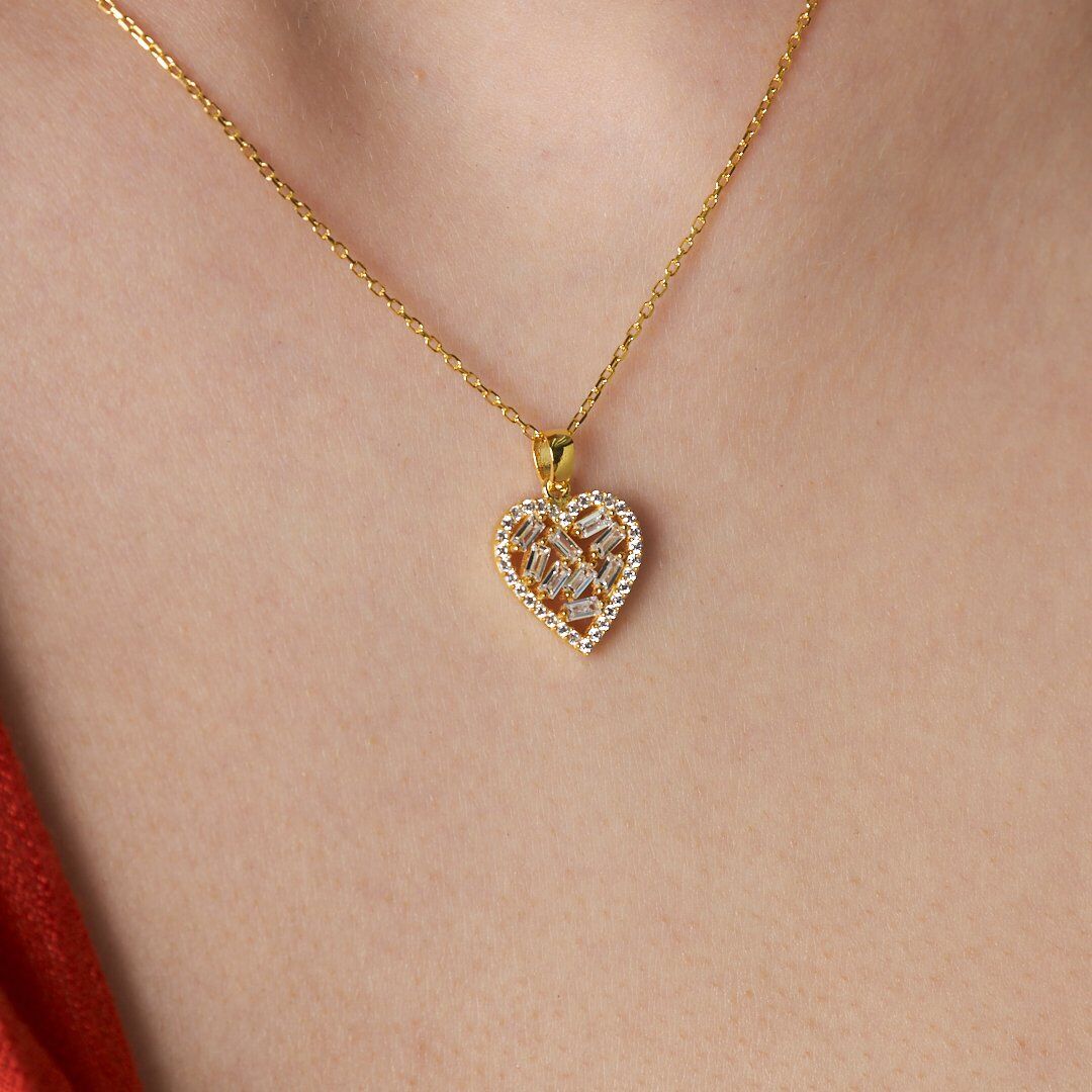 ışıltılı baget taşlı kalp kolye
