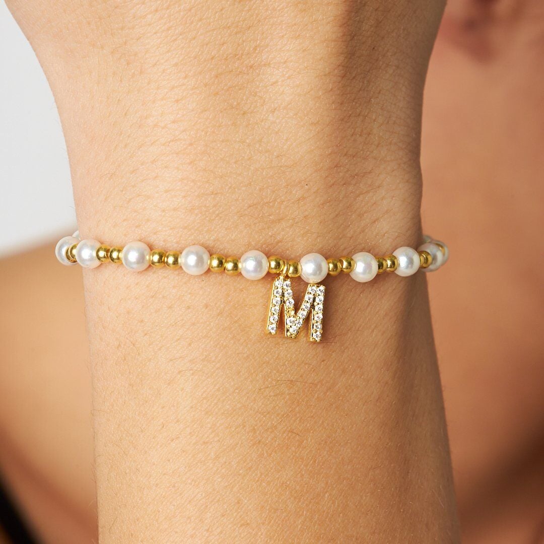İsim Bileziği Bilezik Çift Boncuk Harfli - 925 Ayar Gümüş