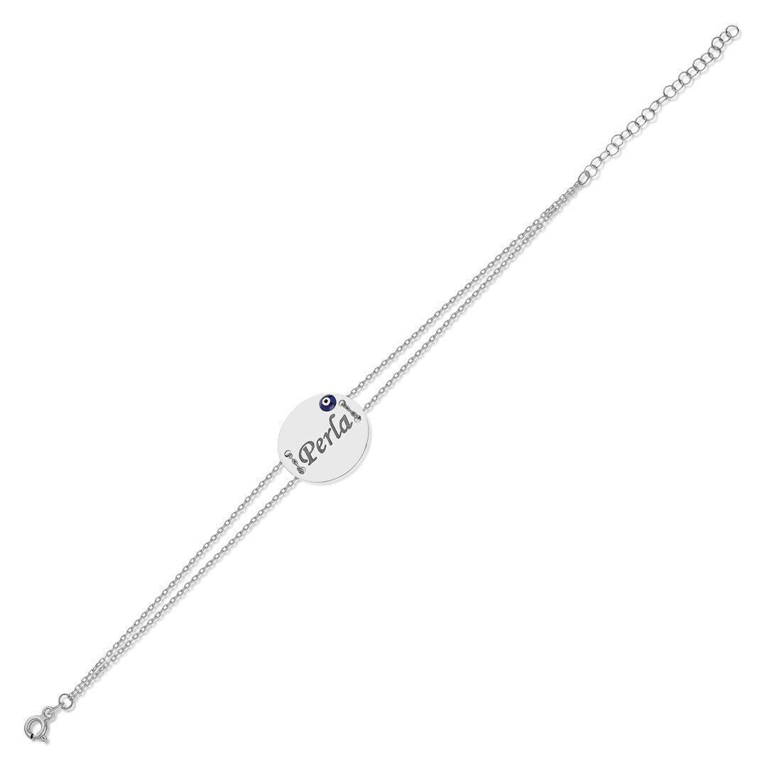 İsim Bileziği Nazar Gözü Plaka İsim Bileziği, 925 ayar gümüşün dayanıklılığını şık tasarımla birleştiriyor. Her kombine uyum sağlayan bu İsim Bileziği Nazar Gözü Plaka İsim Bileziği, bileğinizi şık ve göz alıcı kılacak.