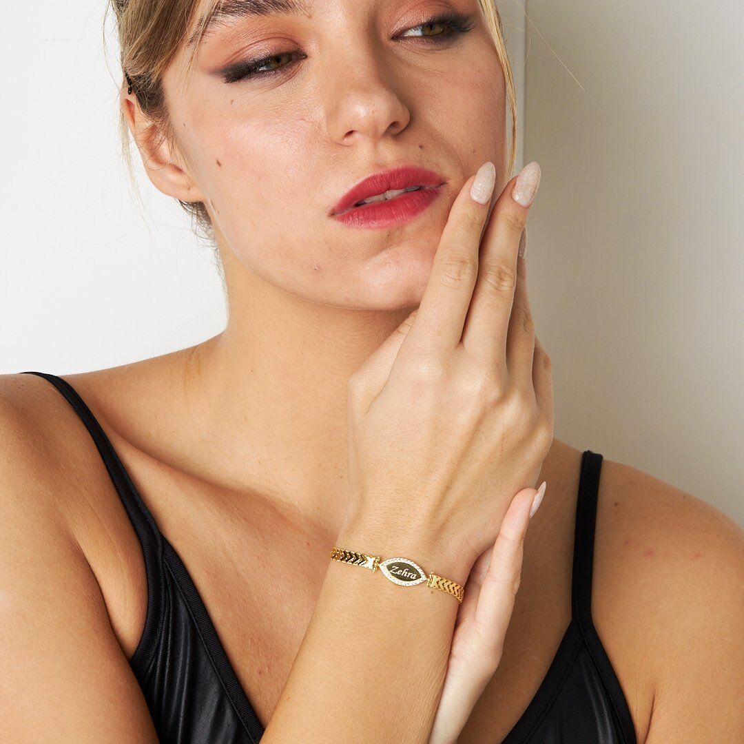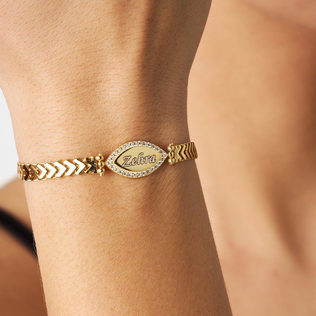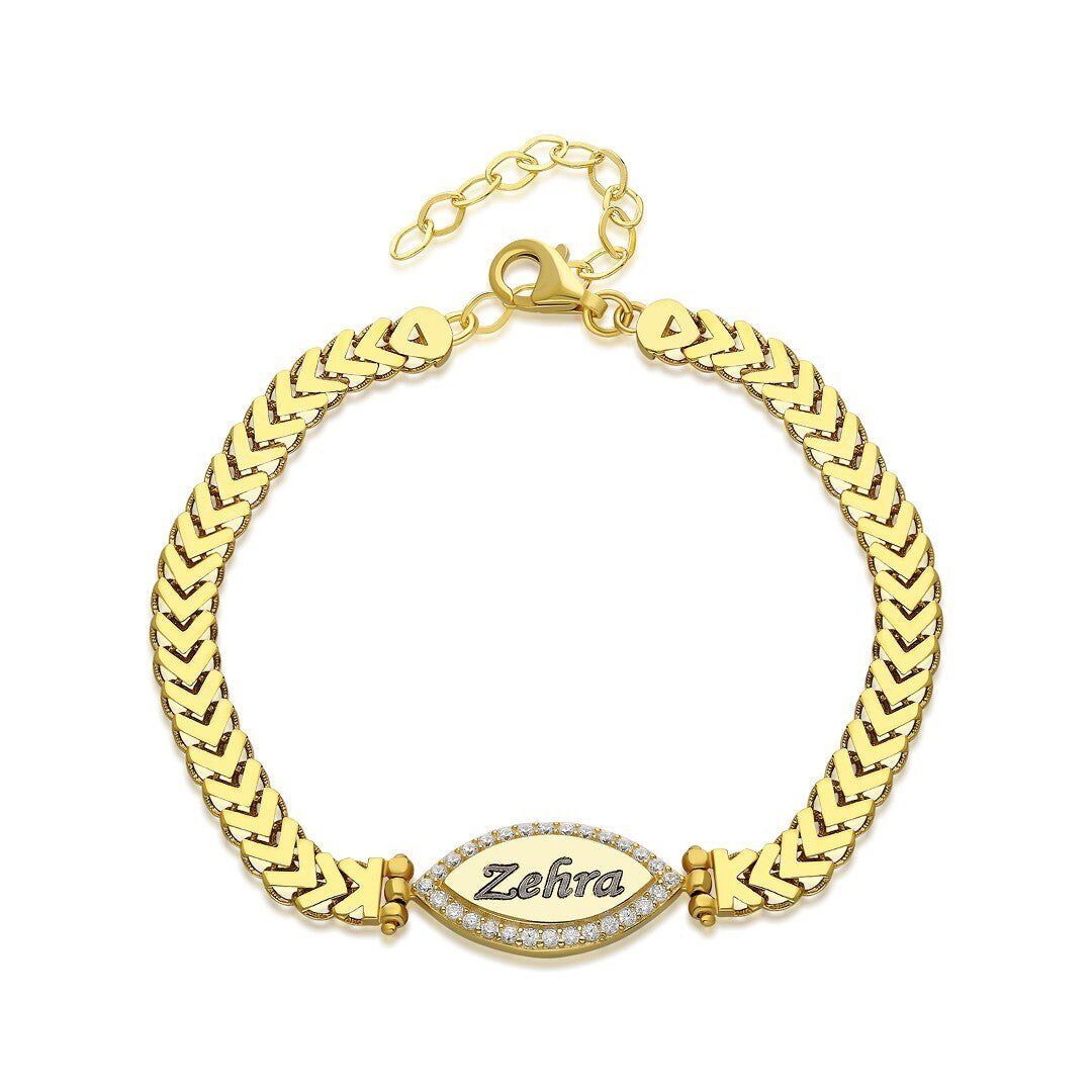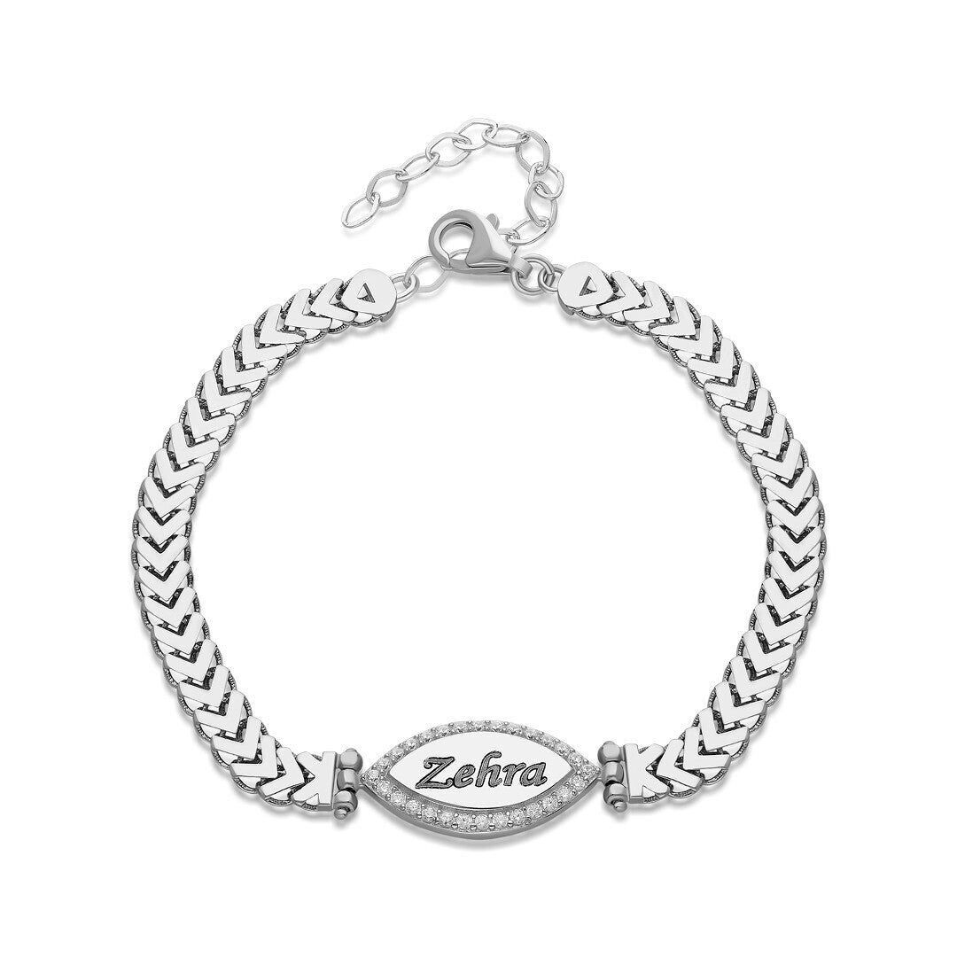 İsim Bileziği Dikenli Zincir Bilezik Taşlı - 925 Ayar Gümüş