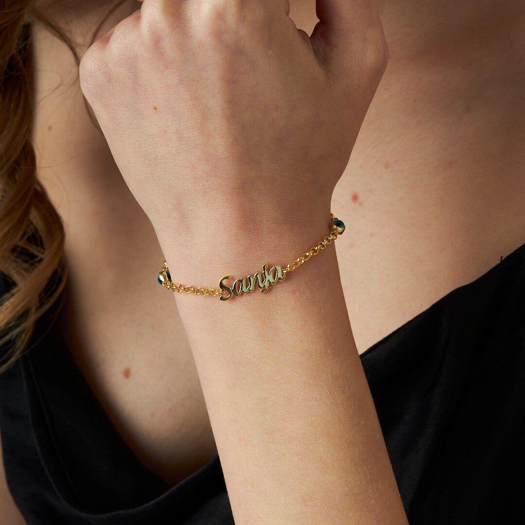 İsim Bileziği İki Bilezik Nazar İle - 925 Ayar Gümüş