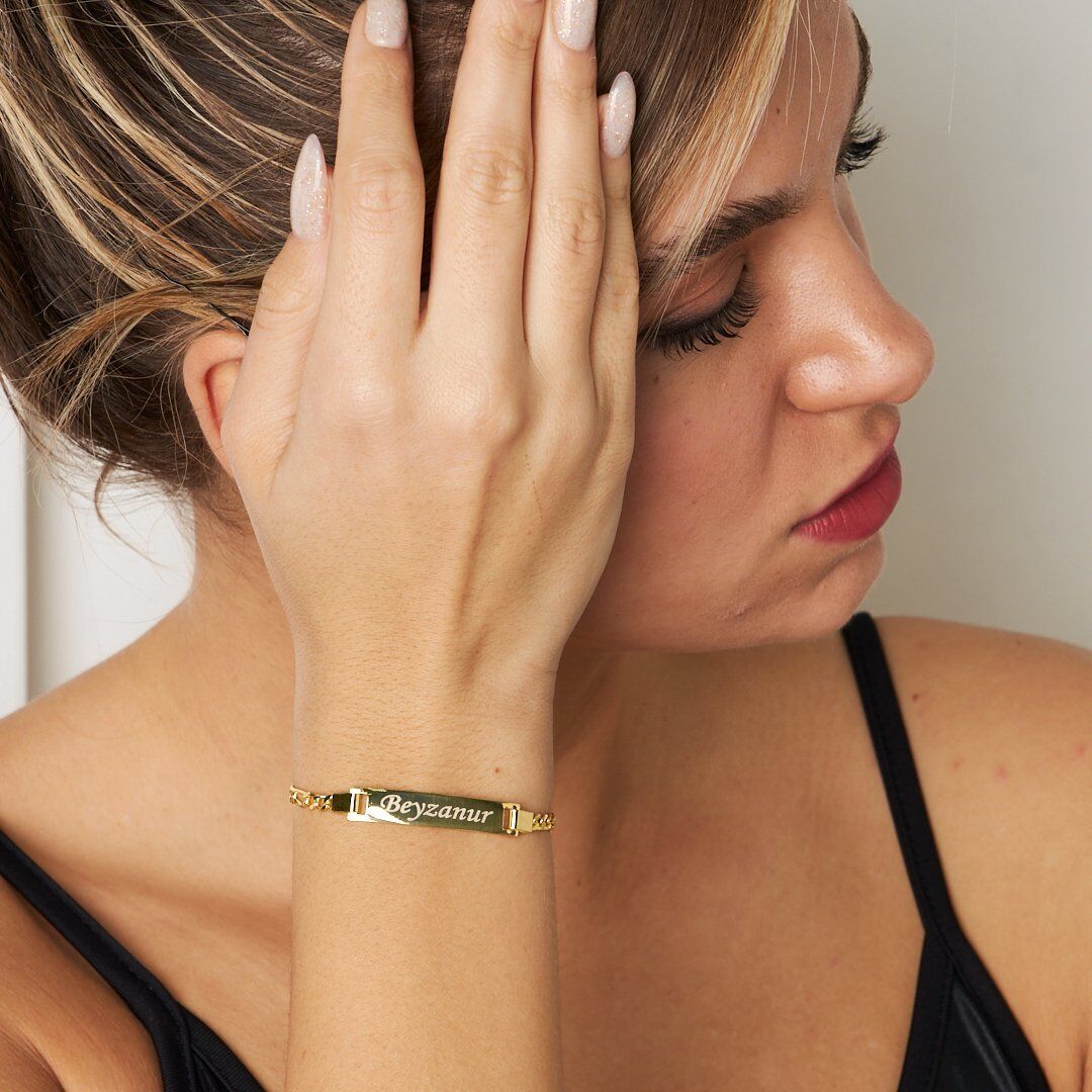 Günlük kullanım için ideal olan İsim Bileziği İsim Çerçeveli Oymalı Bileklik, sadeliği ve zarafetiyle her tarza uyum sağlar. Güçlü mandal kilit sistemi sayesinde gün boyu emniyetle kullanabilirsiniz.
