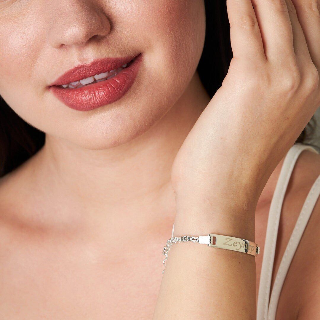 925 ayar gümüşten üretilen İsim Bileziği Kral Zincir Plaka Bileziği, hassas işçiliği ve uzun ömürlü yapısıyla öne çıkar. Yüzeyi özel parlatma işlemiyle işlenmiş olup ışığı mükemmel biçimde yansıtır.
