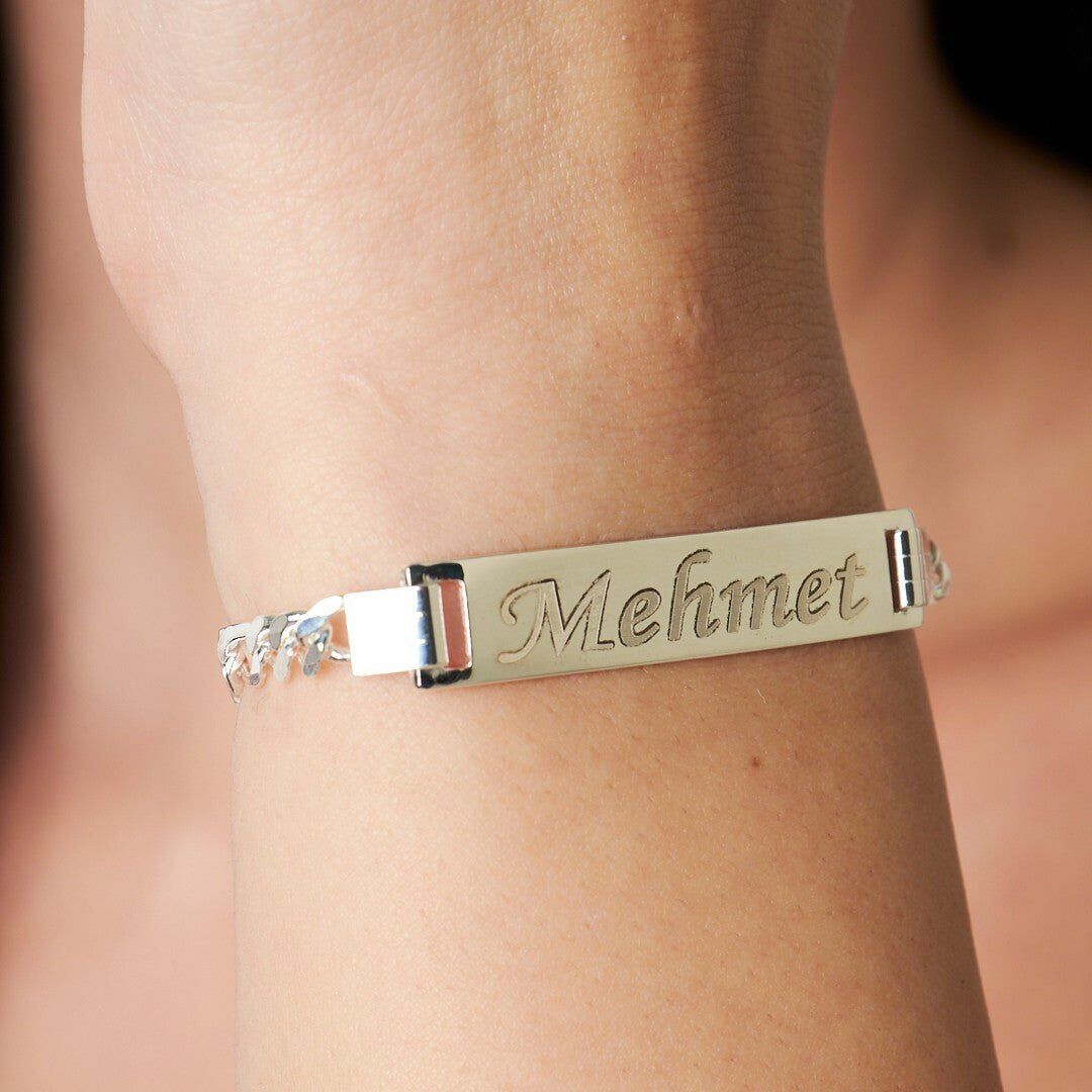 Asker Jewelry güvencesiyle hazırlanan İsim Bileziği Plaka İsim Kolye Bileklik - 925 Ayar Gümüş, kalite ve estetiği bir arada sunar. İsim Bileziği Plaka İsim Kolye Bileklik modelini şimdi keşfedin.