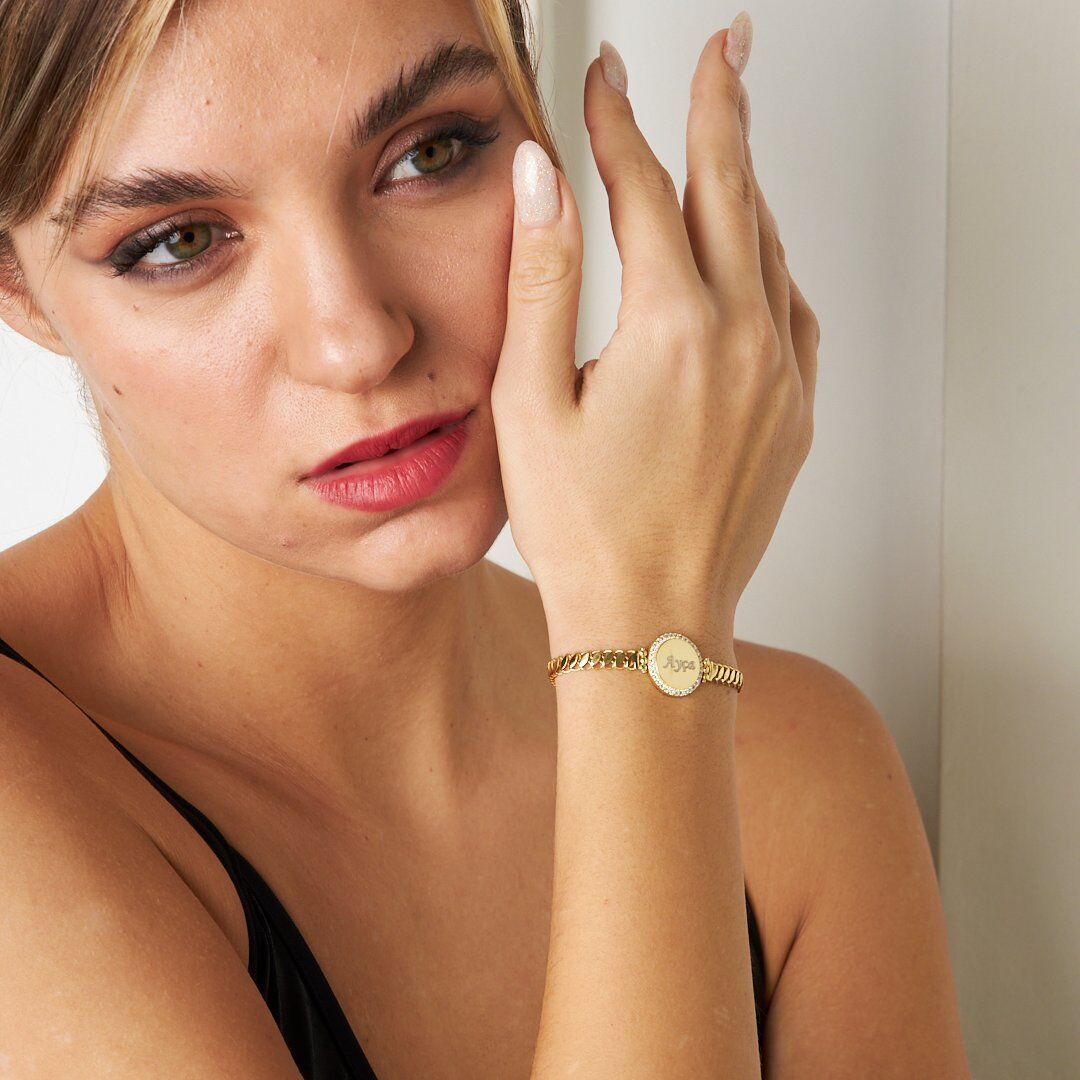Günlük kullanım için ideal olan İsim Bileziği Taş Plakalı İsimli Zincir Bileklik, sadeliği ve zarafetiyle her tarza uyum sağlar. Güçlü mandal kilit sistemi sayesinde gün boyu emniyetle kullanabilirsiniz.