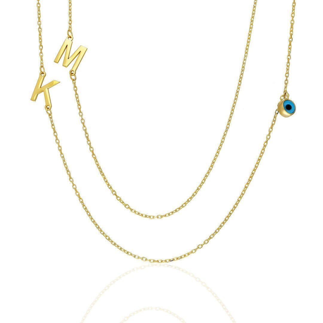 İsim Kolyesi 2 Harf Nazar Gözü Kolye - 925 Ayar Gümüş