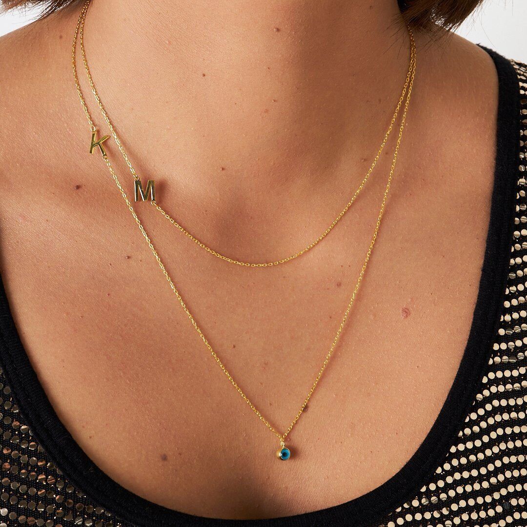 İsim Kolyesi 2 Harf Nazar Gözü Kolye - 925 Ayar Gümüş, 925 ayar gümüşün zarifliğini modern tasarımla buluşturuyor. El işçiliğiyle üretilen bu İsim Kolyesi 2 Harf Nazar Gözü Kolye, her kombine uyum sağlayan şık bir aksesuardır.