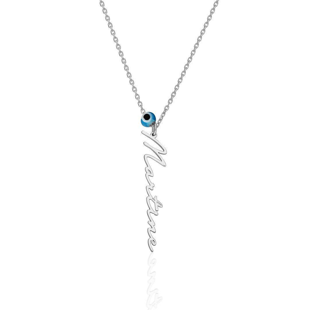 İsim Kolyesi Nazar Blick Dik Yazılı İsim Kolyesi - 925 Ayar Gümüş