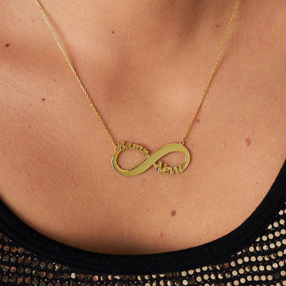 İsim Kolyesi Çift İsim Kolyesi Sonsuzluk Desenli - 925 Ayar Gümüş, 925 ayar gümüşün zarifliğini modern tasarımla buluşturuyor. El işçiliğiyle üretilen bu İsim Kolyesi Çift İsim Kolyesi Sonsuzluk Desenli, her kombine uyum sağlayan şık bir aksesuardır.