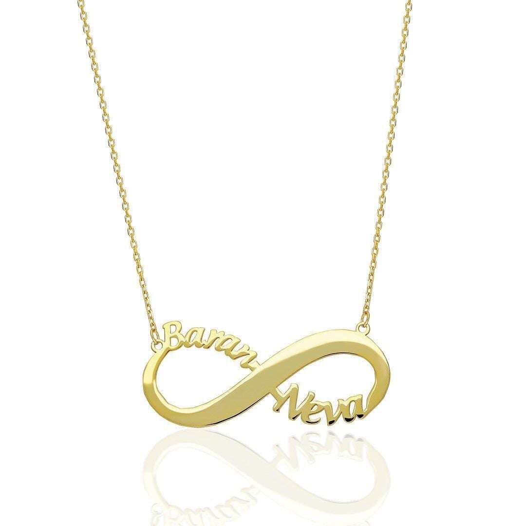 İsim Kolyesi Çift İsim Kolyesi Sonsuzluk Desenli - 925 Ayar Gümüş