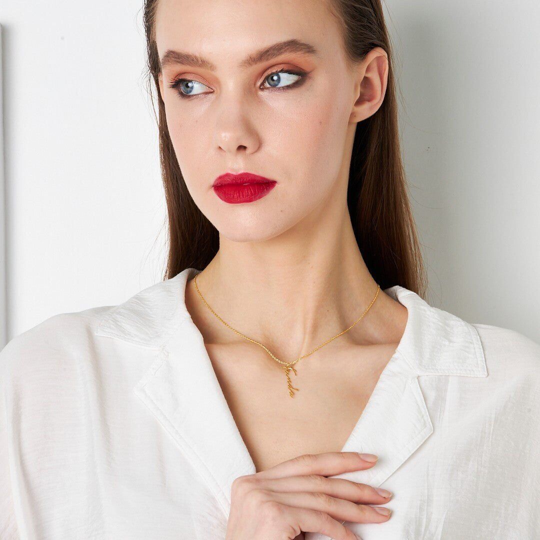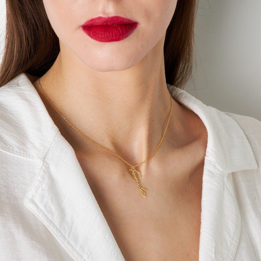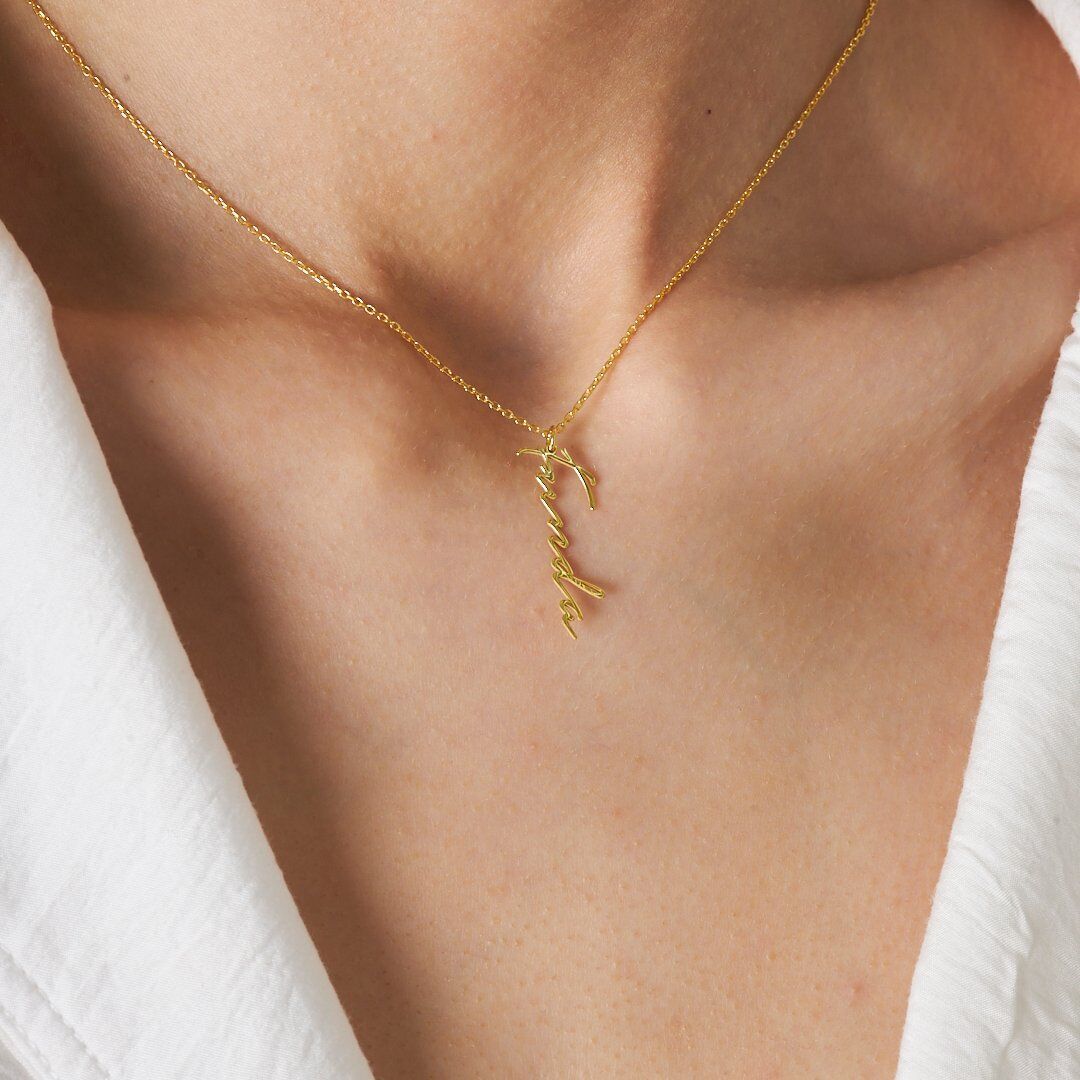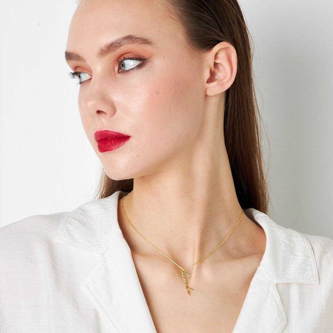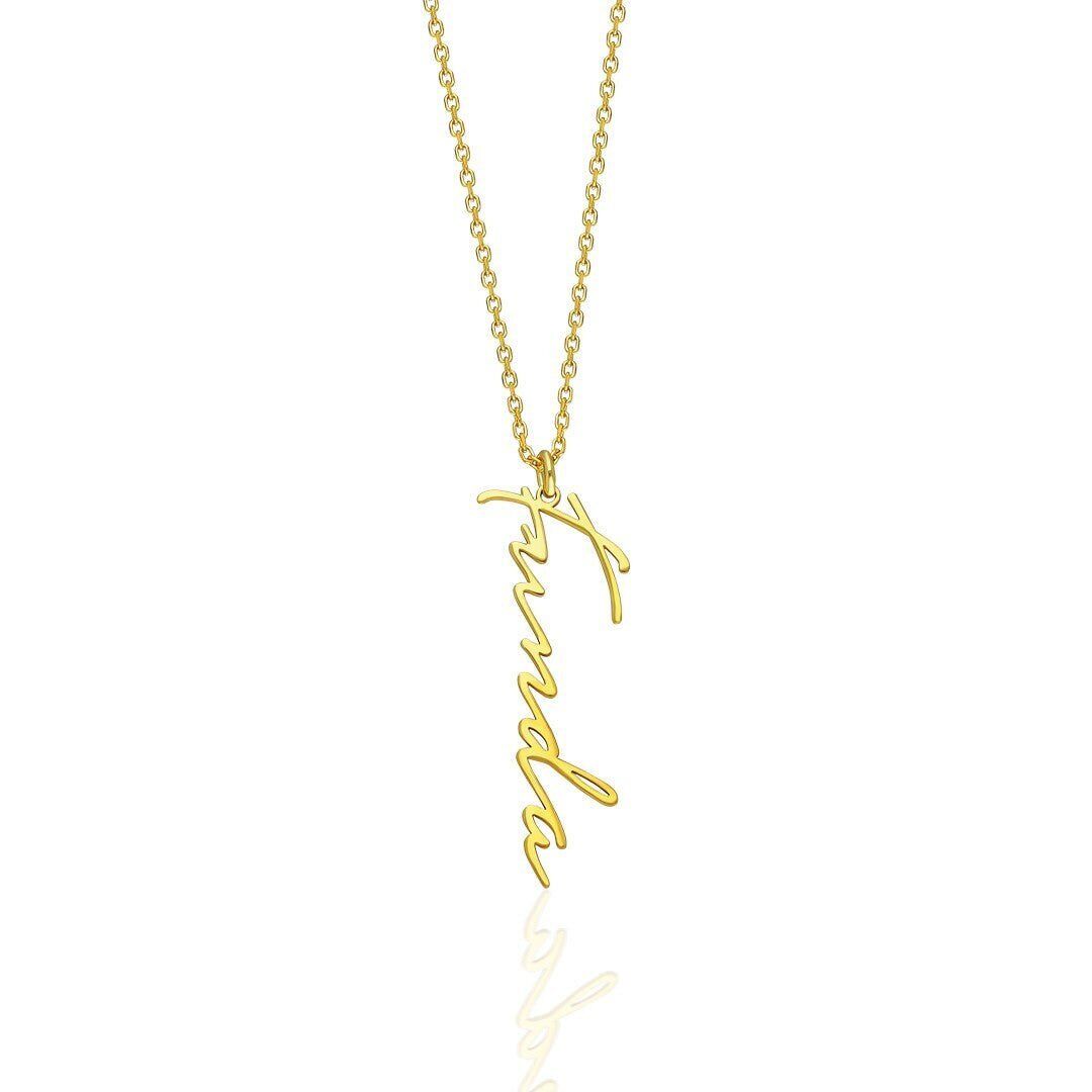İsim Kolyesi Dikey El Yazısı Kolye - 925 Ayar Gümüş, 925 ayar gümüşün zarifliğini modern tasarımla buluşturuyor. El işçiliğiyle üretilen bu İsim Kolyesi Dikey El Yazısı Kolye, her kombine uyum sağlayan şık bir aksesuardır.