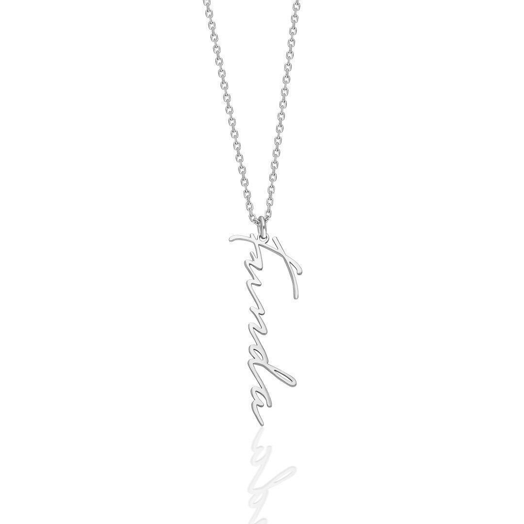 İsim Kolyesi Dikey El Yazısı Kolye - 925 Ayar Gümüş