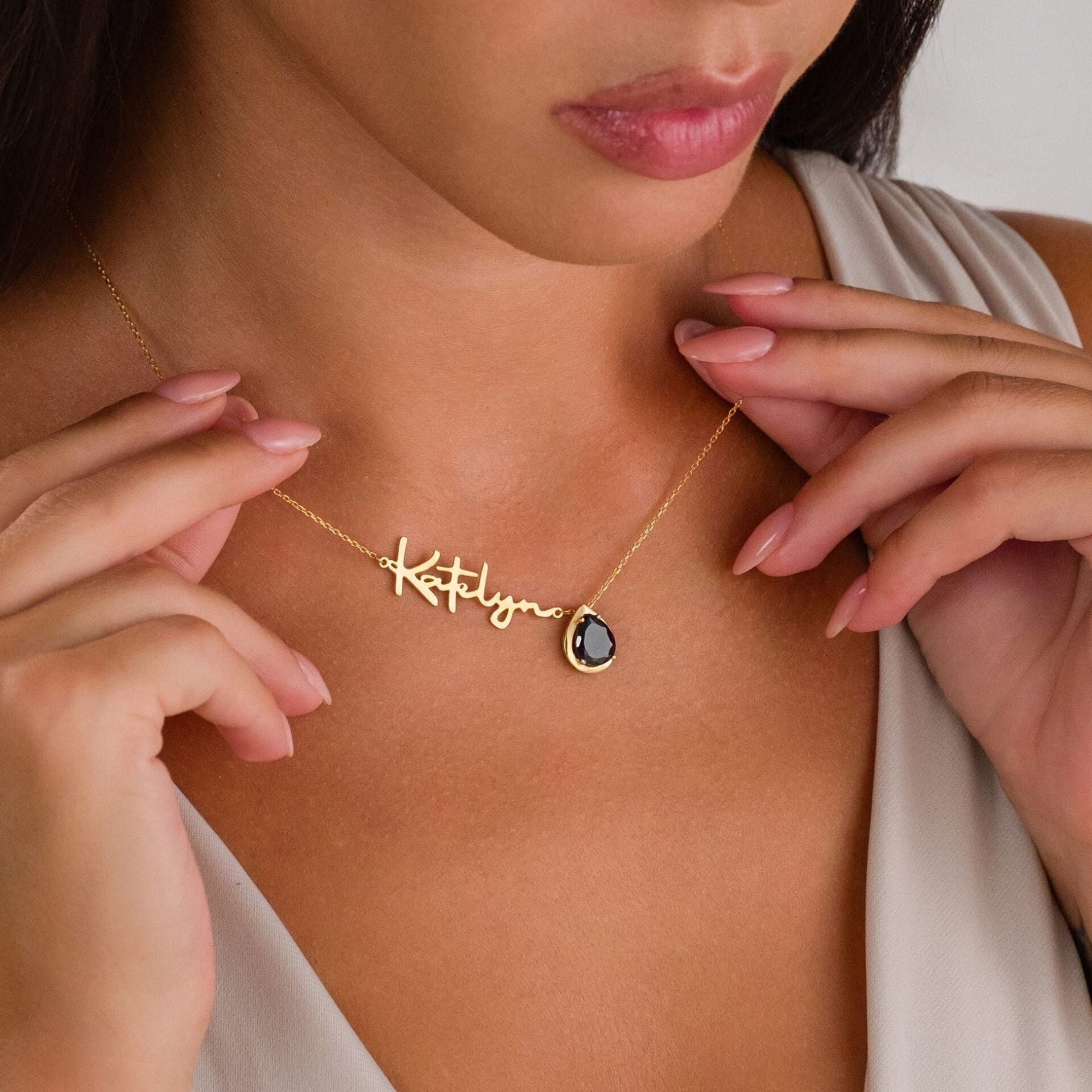 İsim kolyesi - doğum taşı kolyesi - isimli