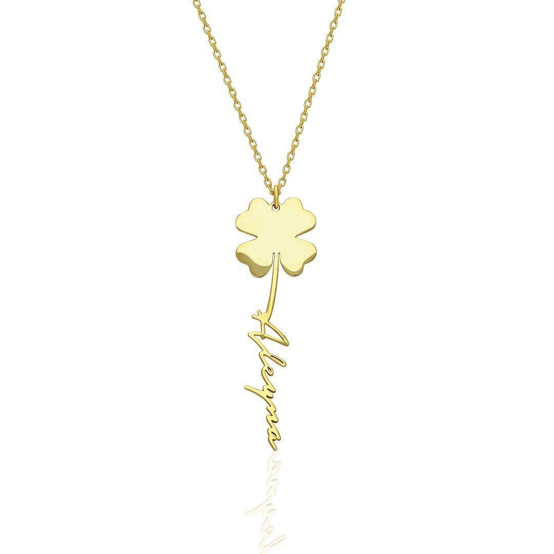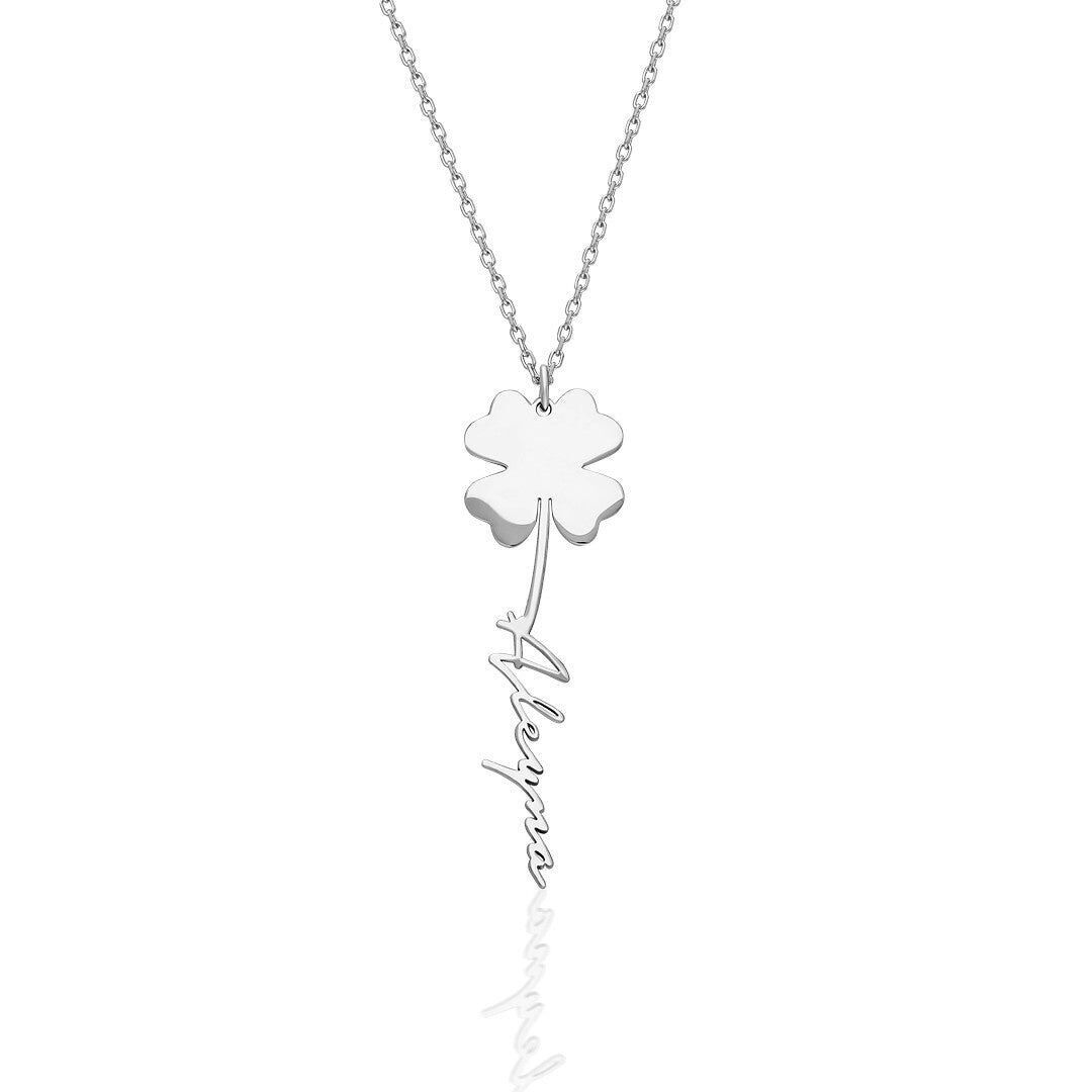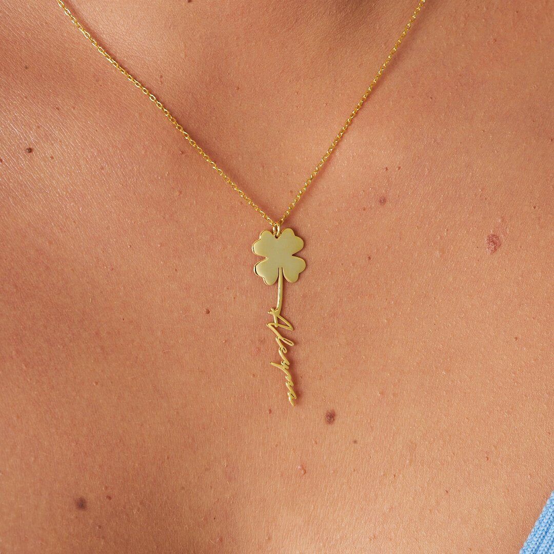 İsim Kolyesi El Yazısıyla Yazılmış İsmin Yazılı Olduğu Yonca Kolye - 925 Ayar Gümüş