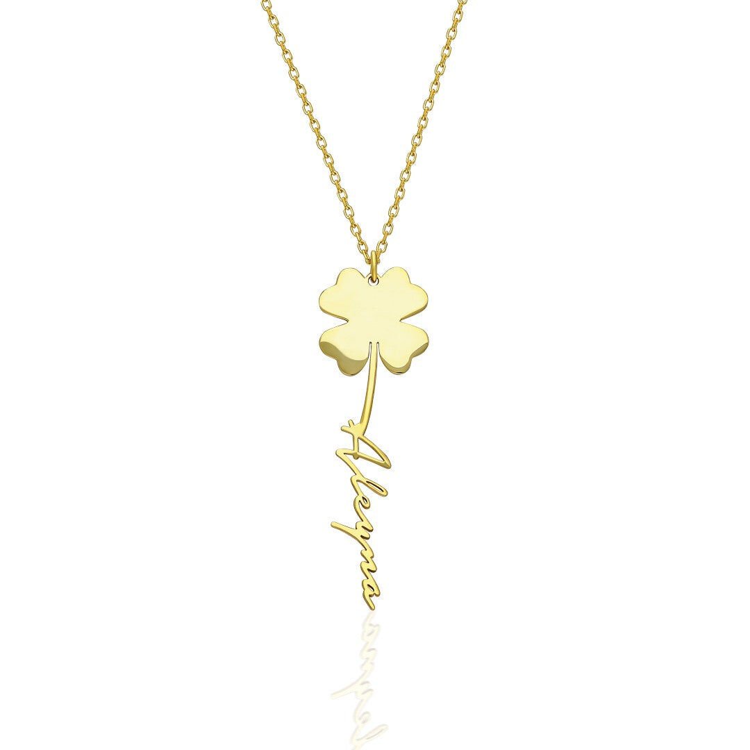 İsim kolyesi - el yazısıyla yazılmış ismin yazılı olduğu yonca kolye