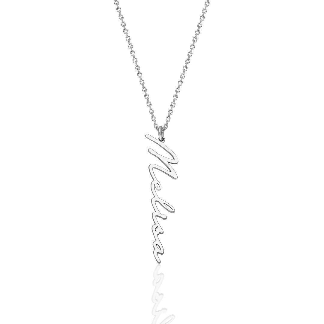 İsim Kolyesi El Yazısıyla Yazılmış İsmin Yer Aldığı Dikey Kolye - 925 Ayar Gümüş, 925 ayar gümüşün zarifliğini modern tasarımla buluşturuyor. El işçiliğiyle üretilen bu İsim Kolyesi El Yazısıyla Yazılmış İsmin Yer Aldığı Dikey Kolye, her kombine uyum sağlayan şık bir aksesuardır.
