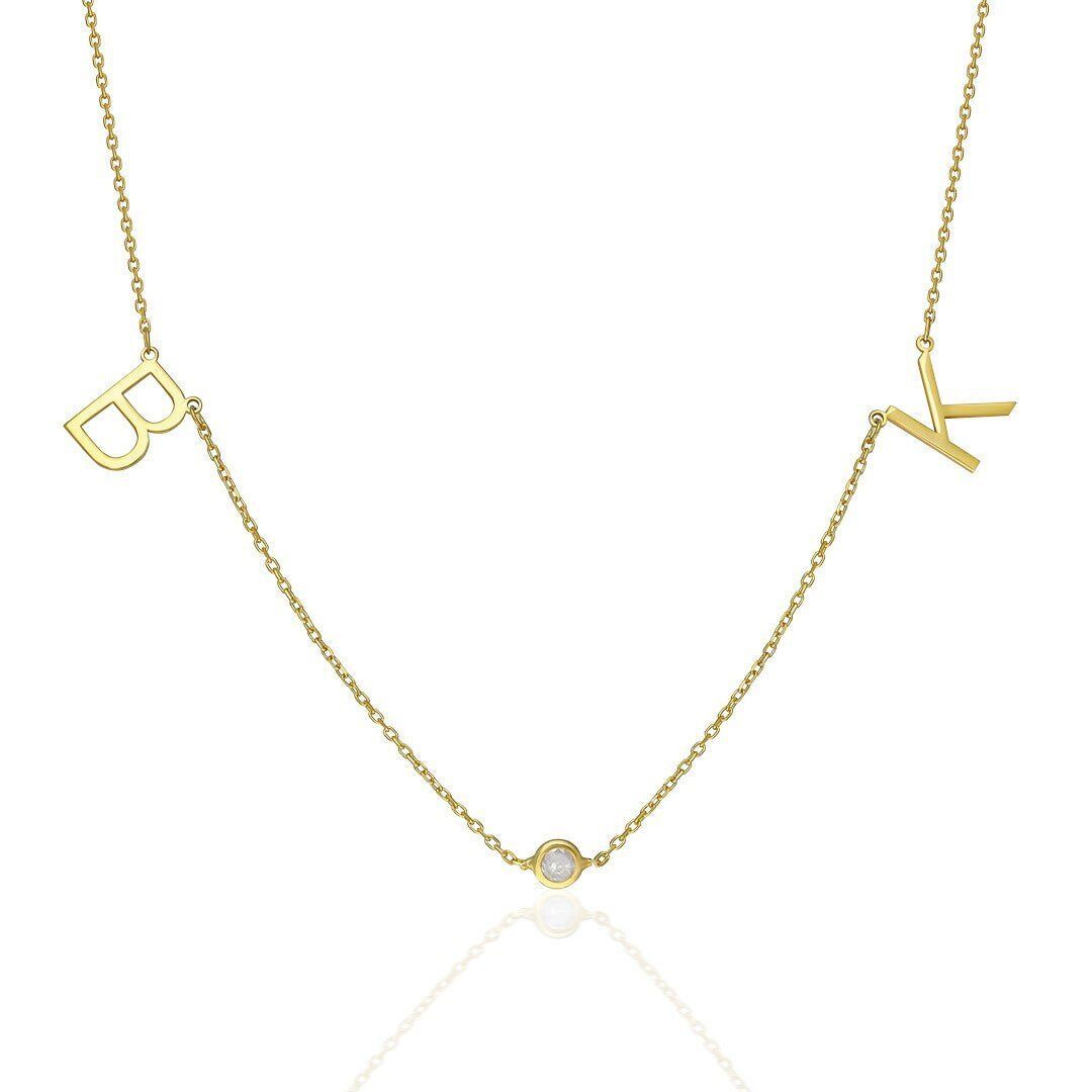 İsim Kolyesi Harf Kolyesi Nokta Taşlı - 925 Ayar Gümüş