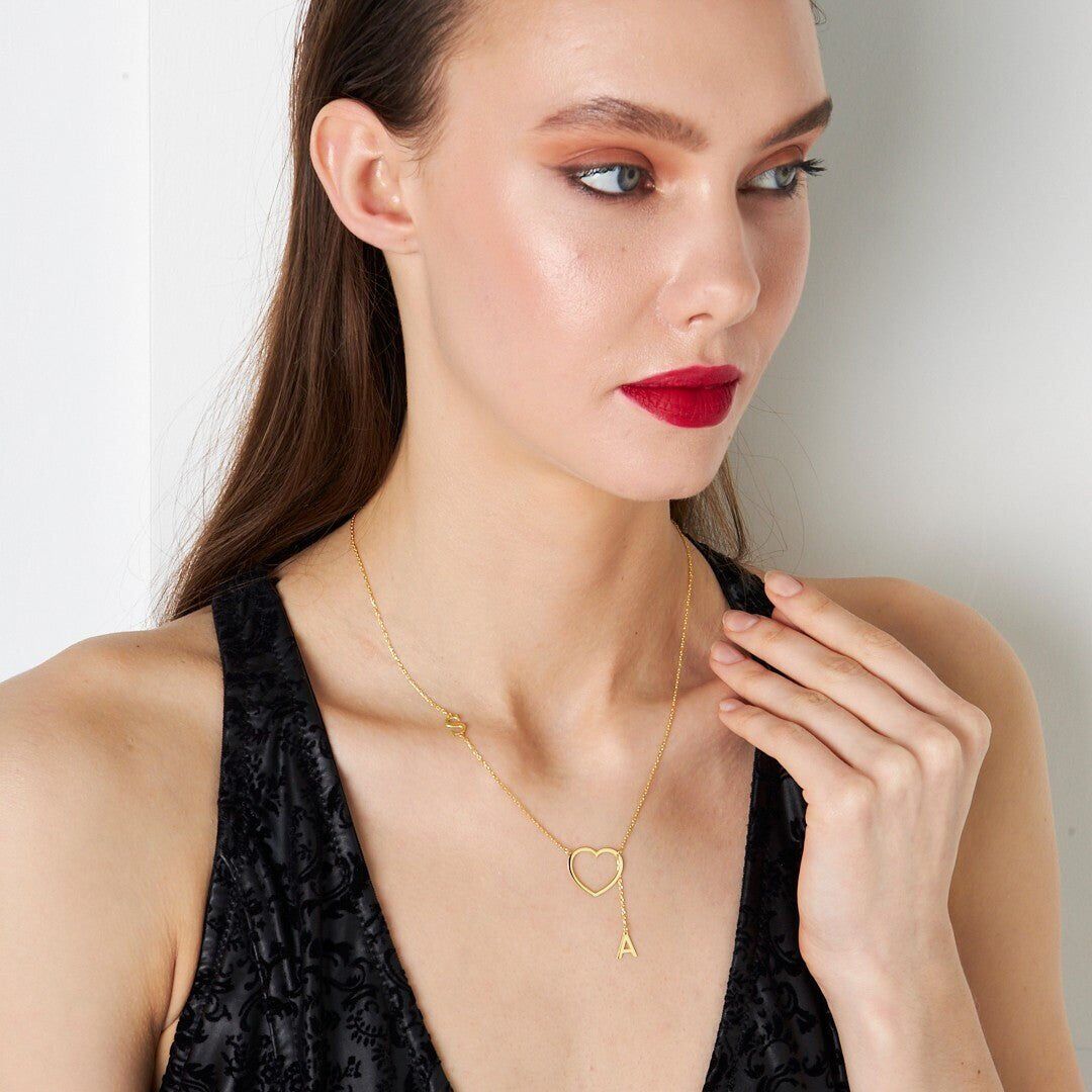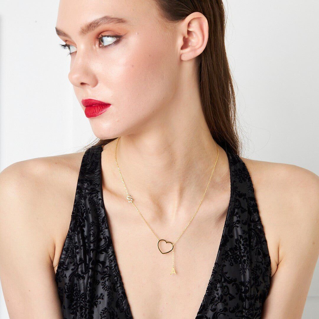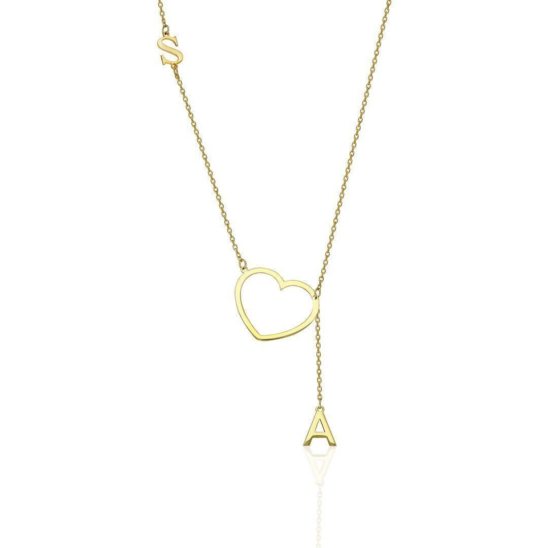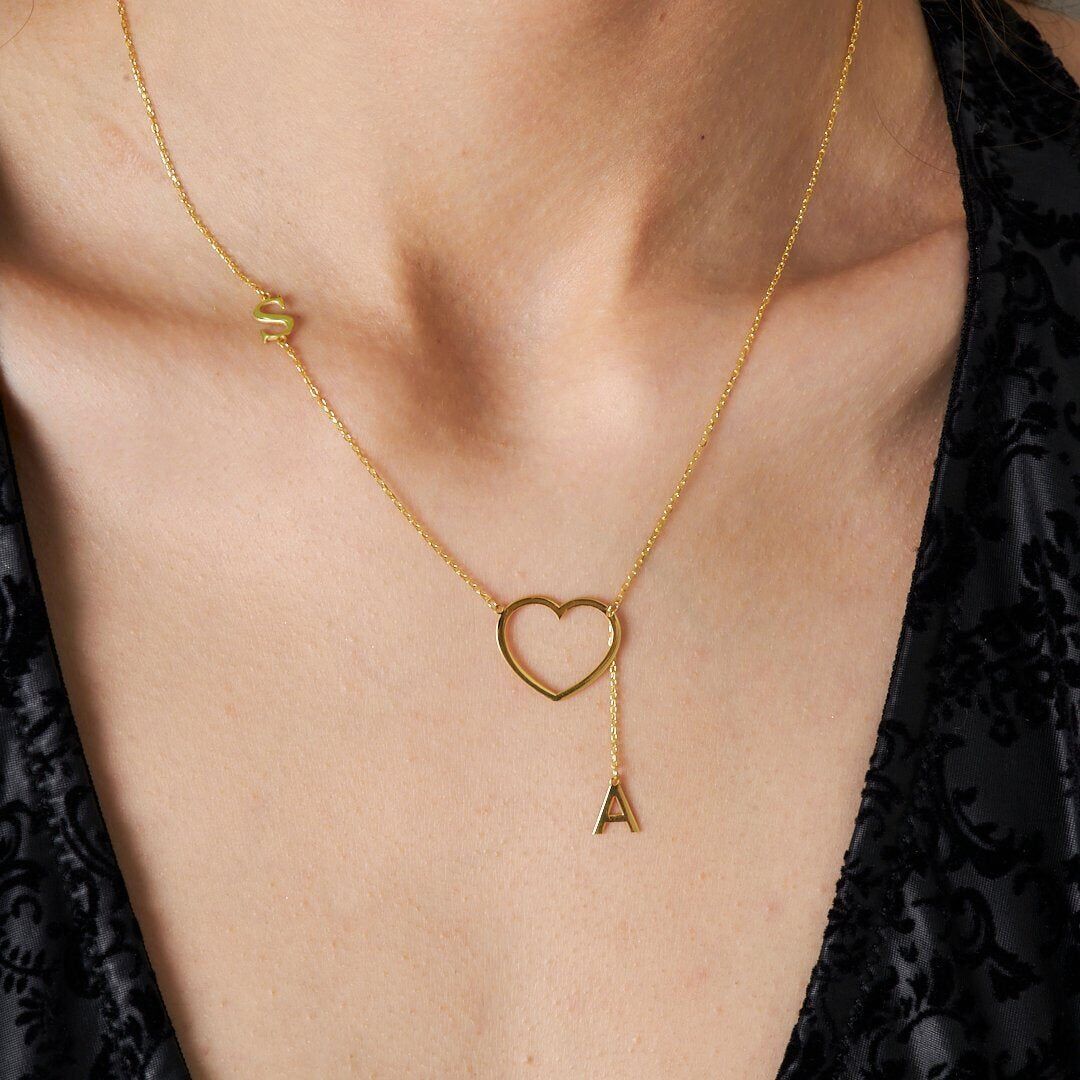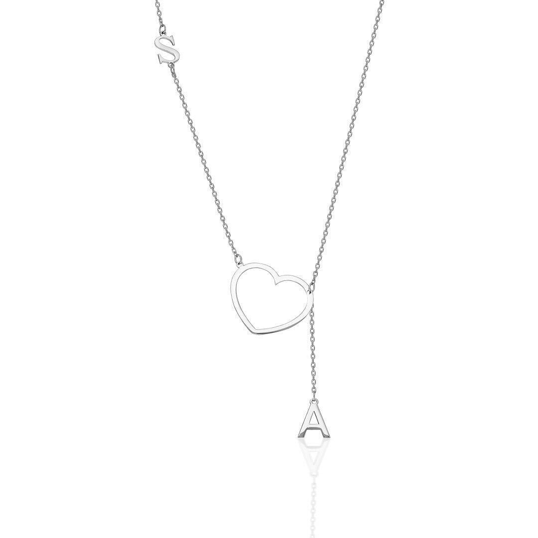 İsim Kolyesi Harf Salıncak Kolyesi Kalpli - 925 Ayar Gümüş