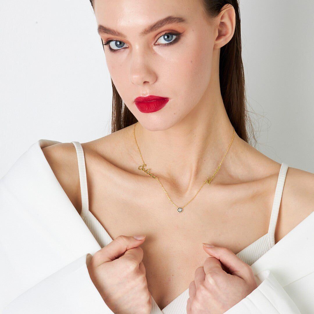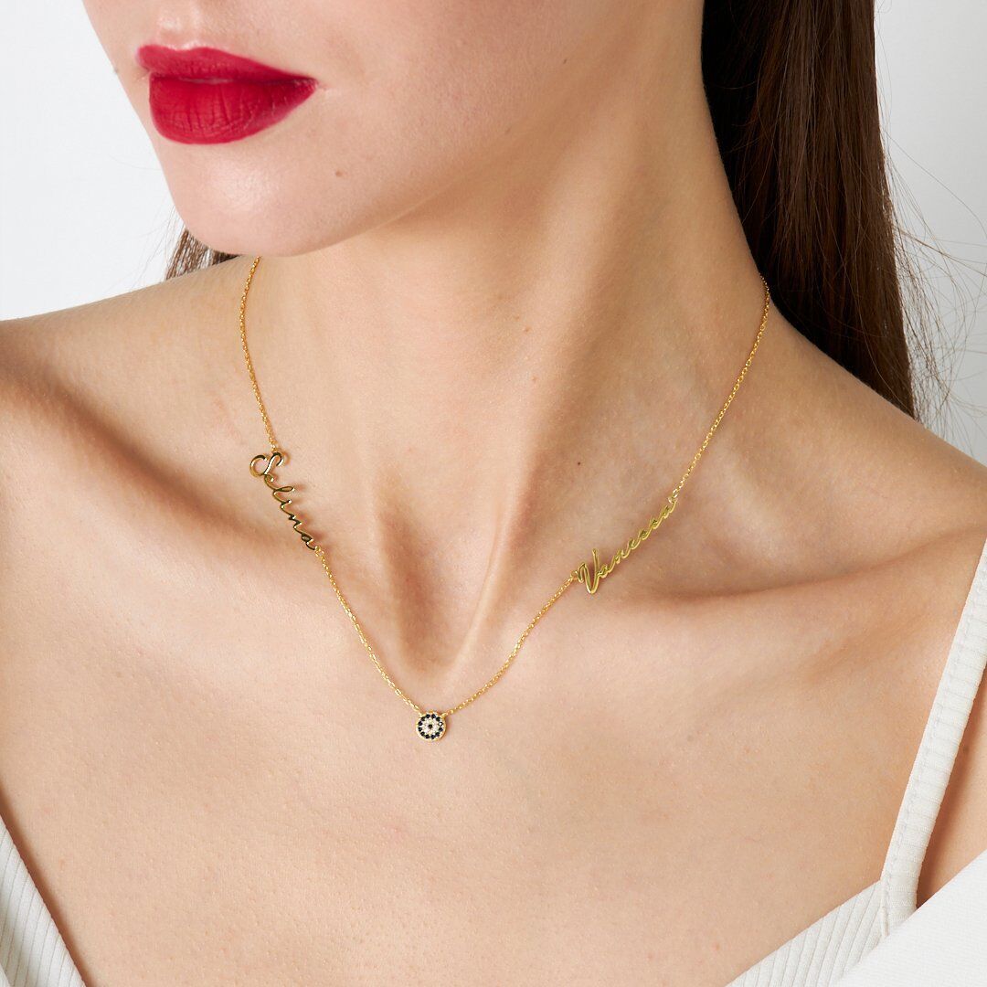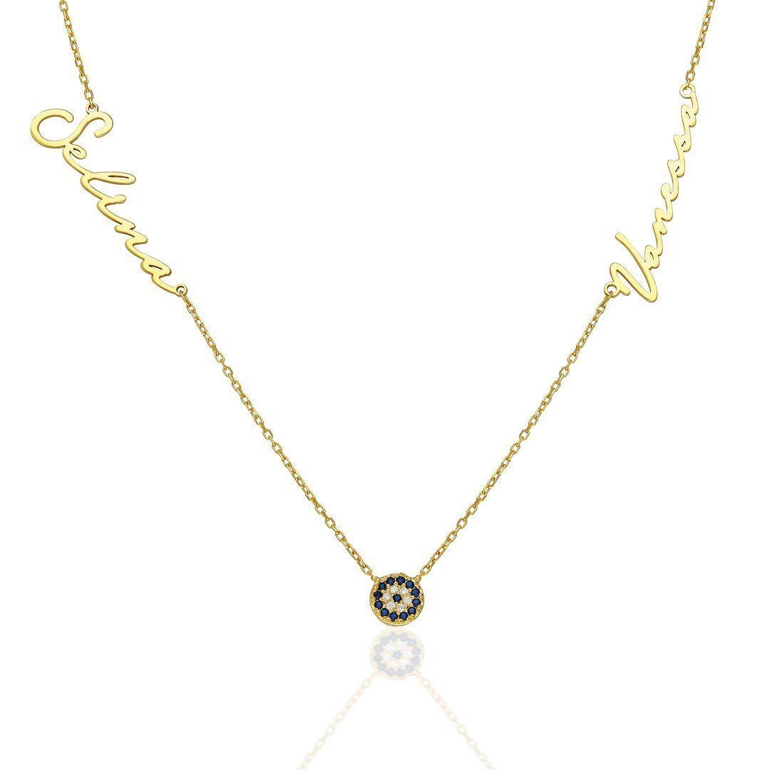 İsim Kolyesi İçki Göz İsim Kolyesi İki İsimli - 925 Ayar Gümüş