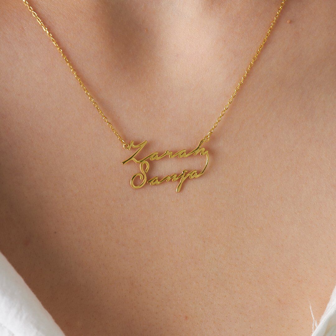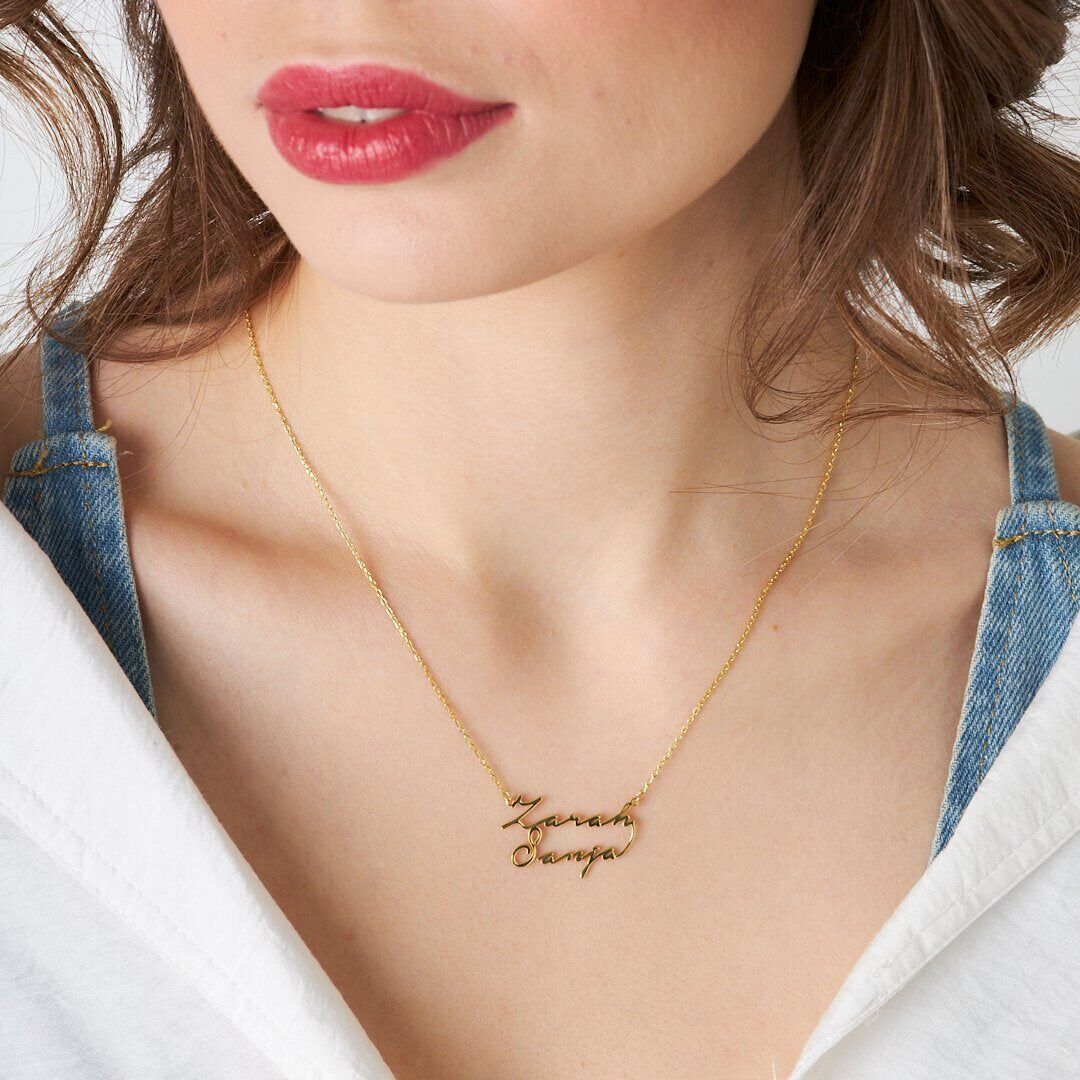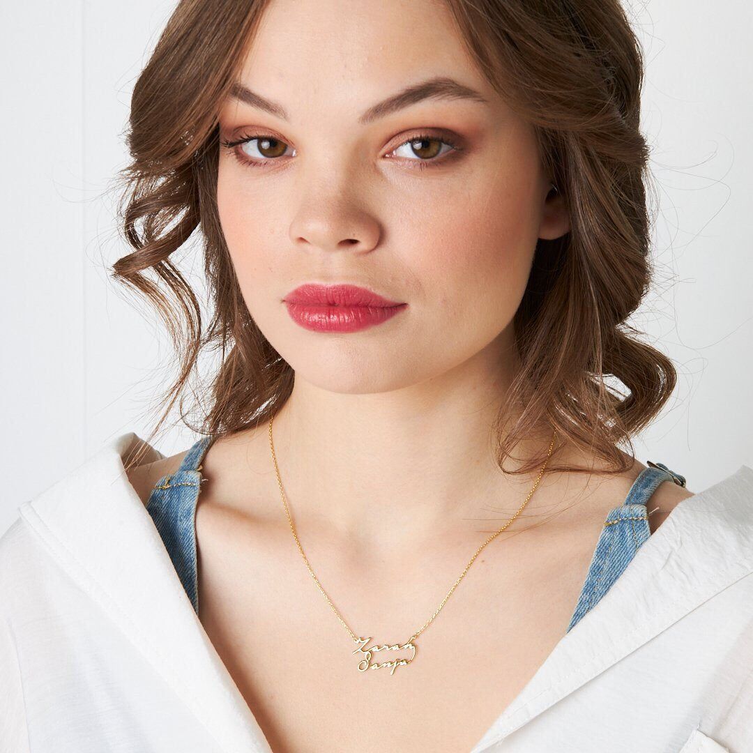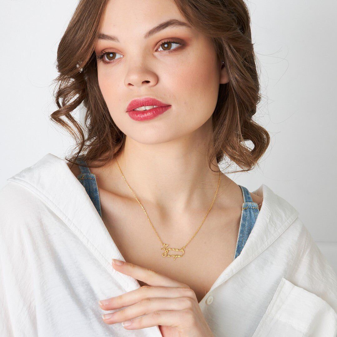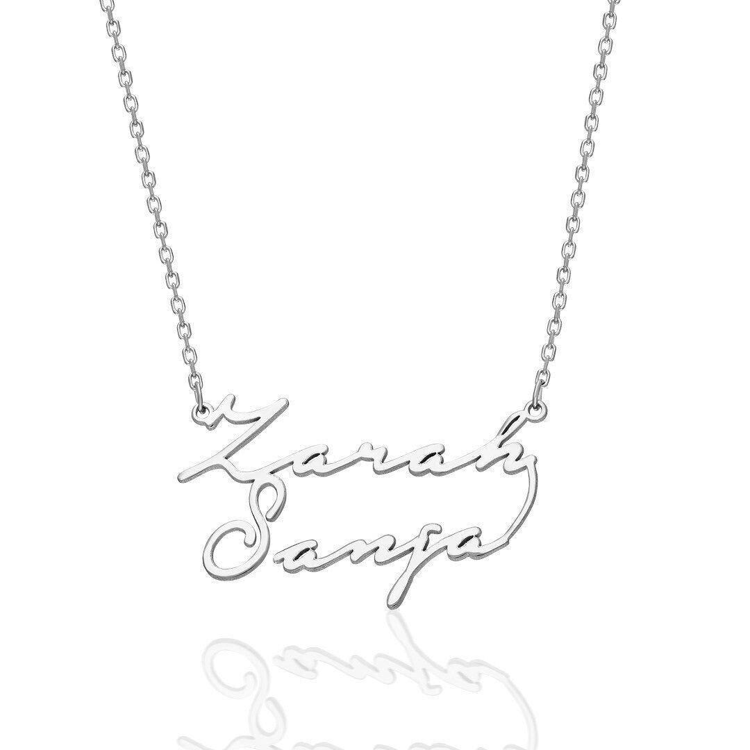 İsim Kolyesi İki İsmin Yazılı Olduğu El Yazısı Kolye - 925 Ayar Gümüş