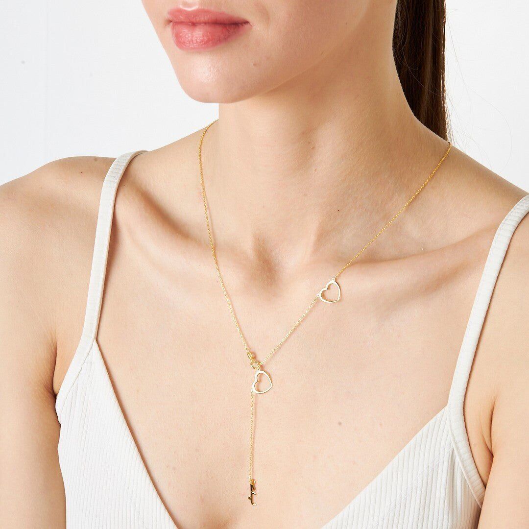 isim kolyesi - İki kalpli Arapça isim kolyesi