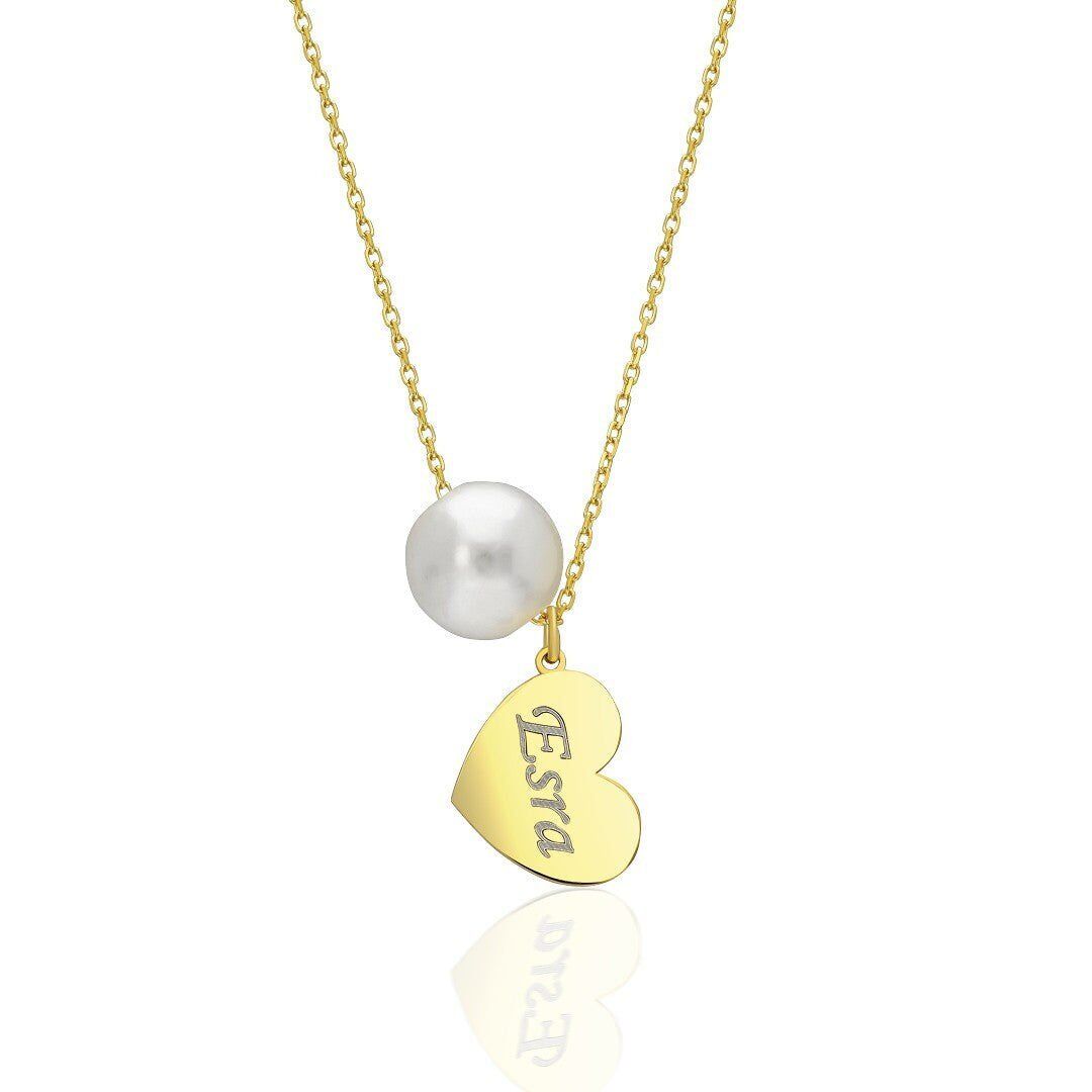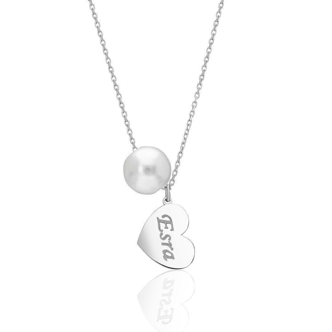 İsim Kolyesi İncili Kalp İsim Kolyesi - 925 Ayar Gümüş