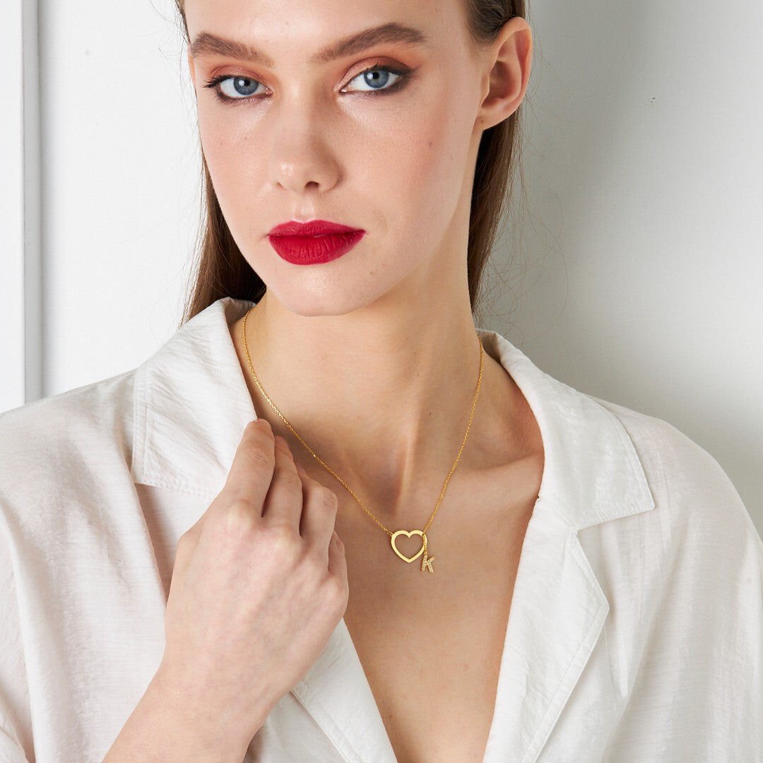 isim kolyesi - kalp kolye ucu - harf kolyesi