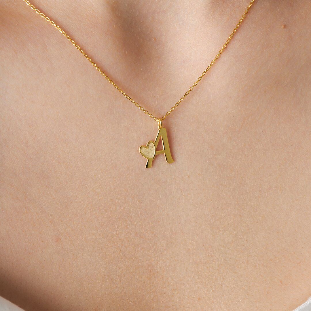 isim kolyesi - kalp ve harf kombinasyonlu kolye