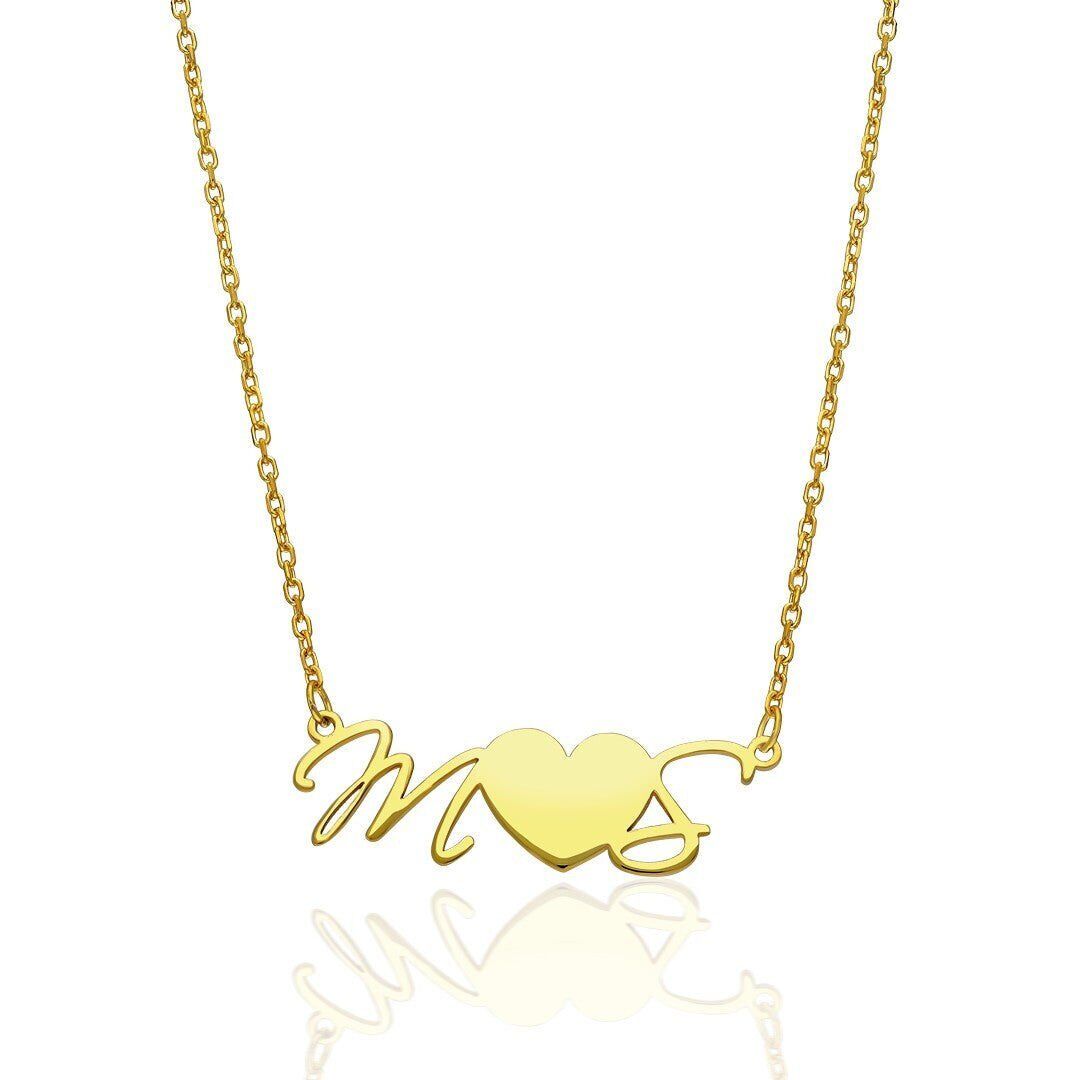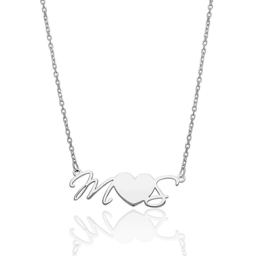 İsim Kolyesi Kalpli El Yazısı Harf Kolyesi - 925 Ayar Gümüş